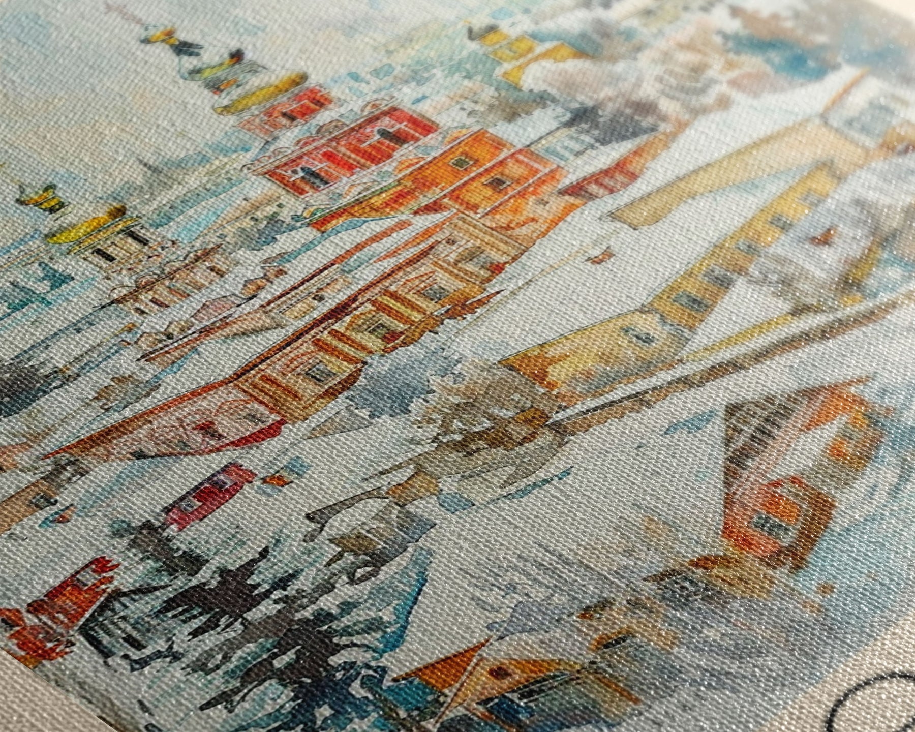 Most of our canvases are made in the USA, with the exception of canvases ordered with the light oak unstained frames, and any large canvases (24x48, 30x60, 16x48 and 20x60) ordered WITH a frame. These are temporarily made in and shipped from Europe, while we try to find a more consistent supplier in the USA.