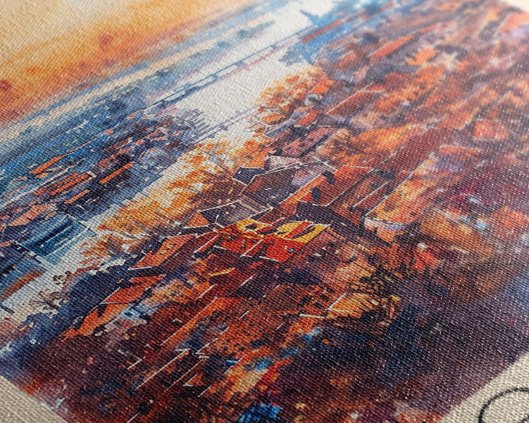 Most of our canvases are made in the USA, with the exception of canvases ordered with the light oak unstained frames, and any large canvases (24x48, 30x60, 16x48 and 20x60) ordered WITH a frame. These are temporarily made in and shipped from Europe, while we try to find a more consistent supplier in the USA.