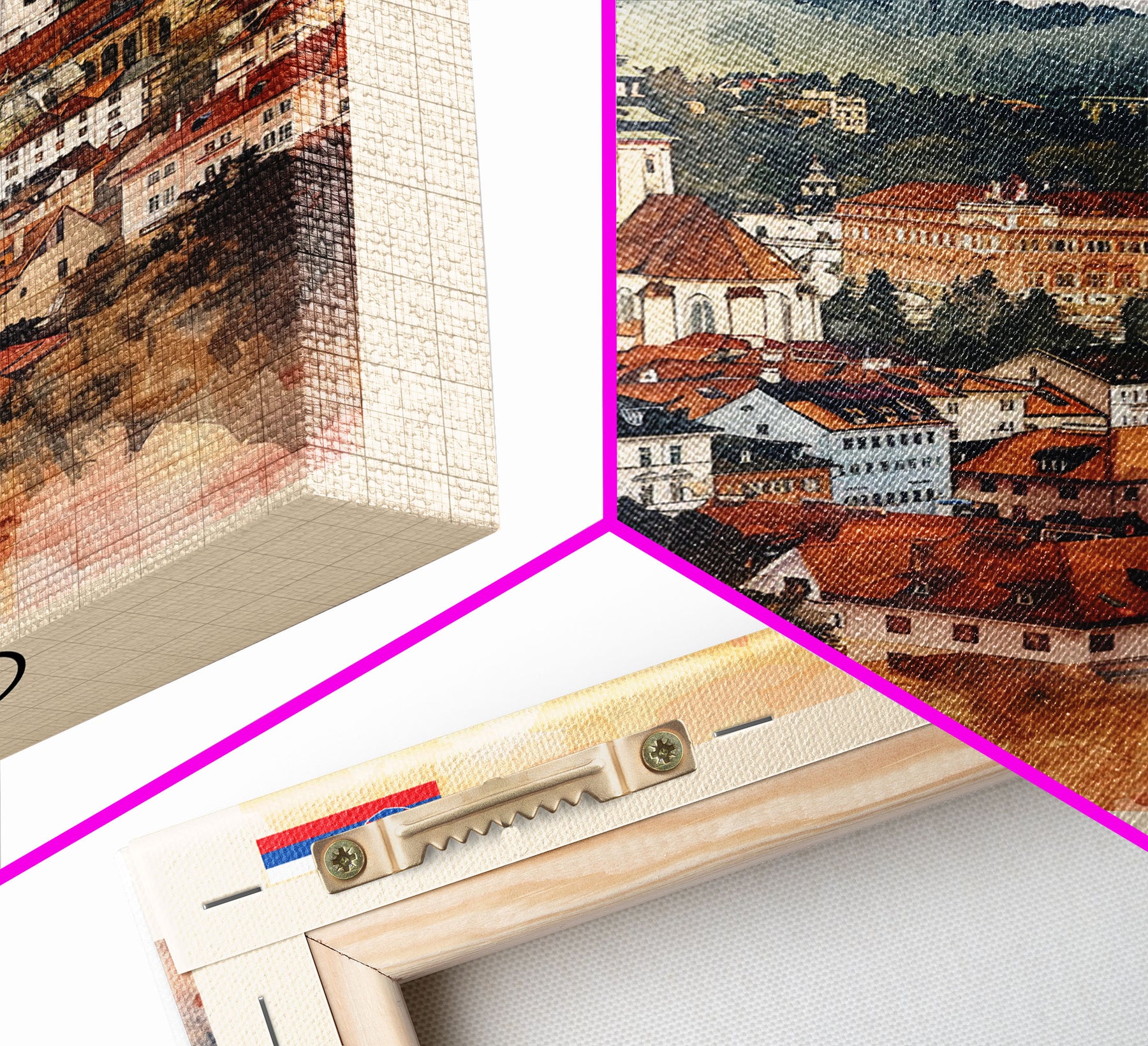 Most of our canvases are made in the USA, with the exception of canvases ordered with the light oak unstained frames, and any large canvases (24x48, 30x60, 16x48 and 20x60) ordered WITH a frame. These are temporarily made in and shipped from Europe, while we try to find a more consistent supplier in the USA.