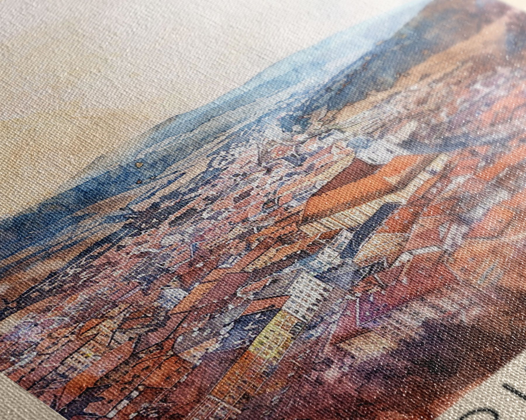 Most of our canvases are made in the USA, with the exception of canvases ordered with the light oak unstained frames, and any large canvases (24x48, 30x60, 16x48 and 20x60) ordered WITH a frame. These are temporarily made in and shipped from Europe, while we try to find a more consistent supplier in the USA.