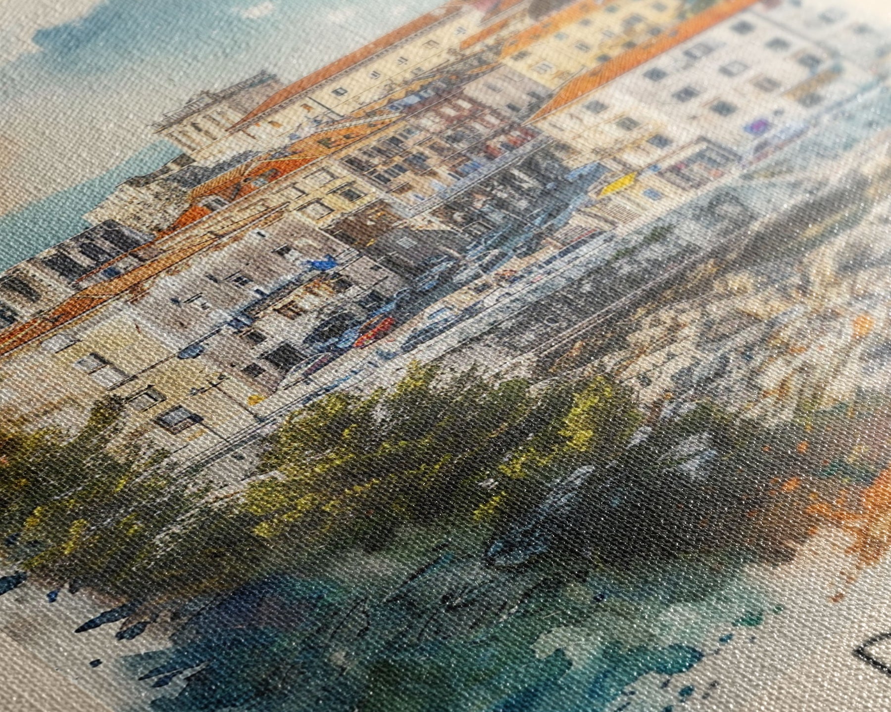 Most of our canvases are made in the USA, with the exception of canvases ordered with the light oak unstained frames, and any large canvases (24x48, 30x60, 16x48 and 20x60) ordered WITH a frame. These are temporarily made in and shipped from Europe, while we try to find a more consistent supplier in the USA.