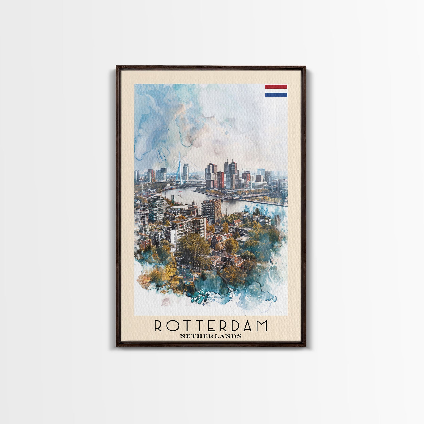 Rotterdam Netherlands Travel Poster Framed Canvas Print, Watercolor Painting, Urban Wall Art, Home Decor, Dutch Cityscape, Artistic Decor