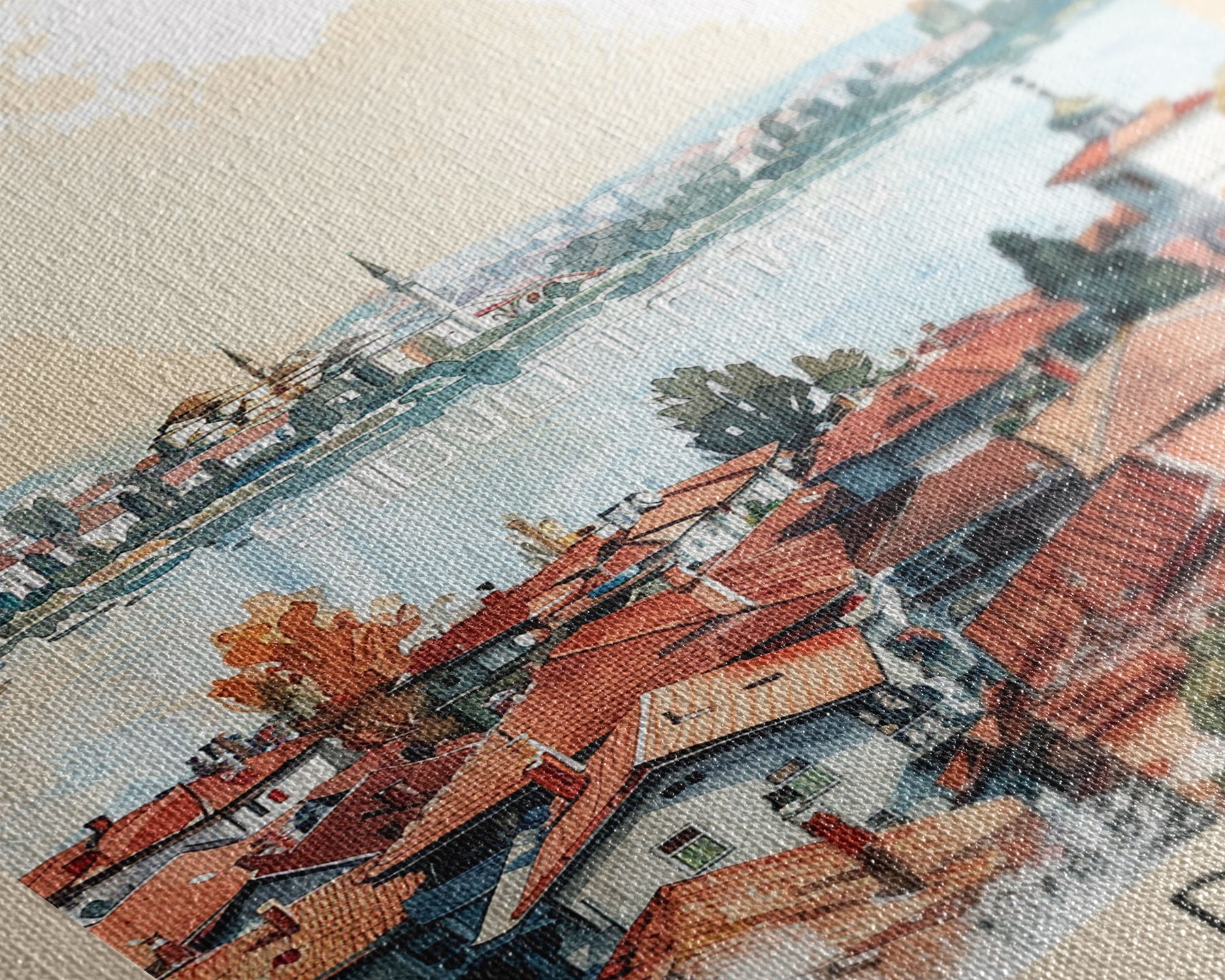 Most of our canvases are made in the USA, with the exception of canvases ordered with the light oak unstained frames, and any large canvases (24x48, 30x60, 16x48 and 20x60) ordered WITH a frame. These are temporarily made in and shipped from Europe, while we try to find a more consistent supplier in the USA.