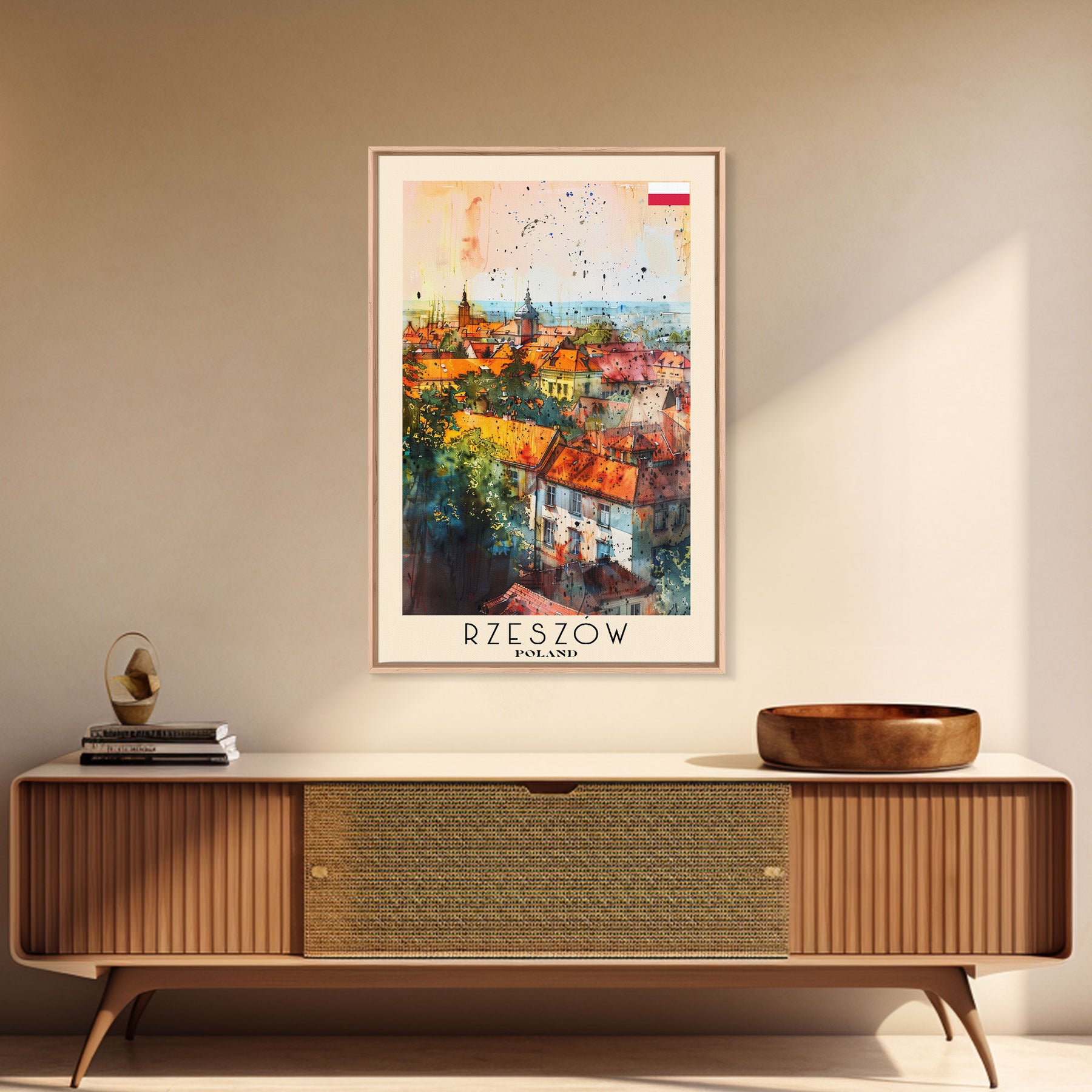 Rzeszow Poland Travel Poster Framed Canvas Print, Watercolor Painting, Urban Wall Art, Home Decor, Polish Cityscape, Classic Decor