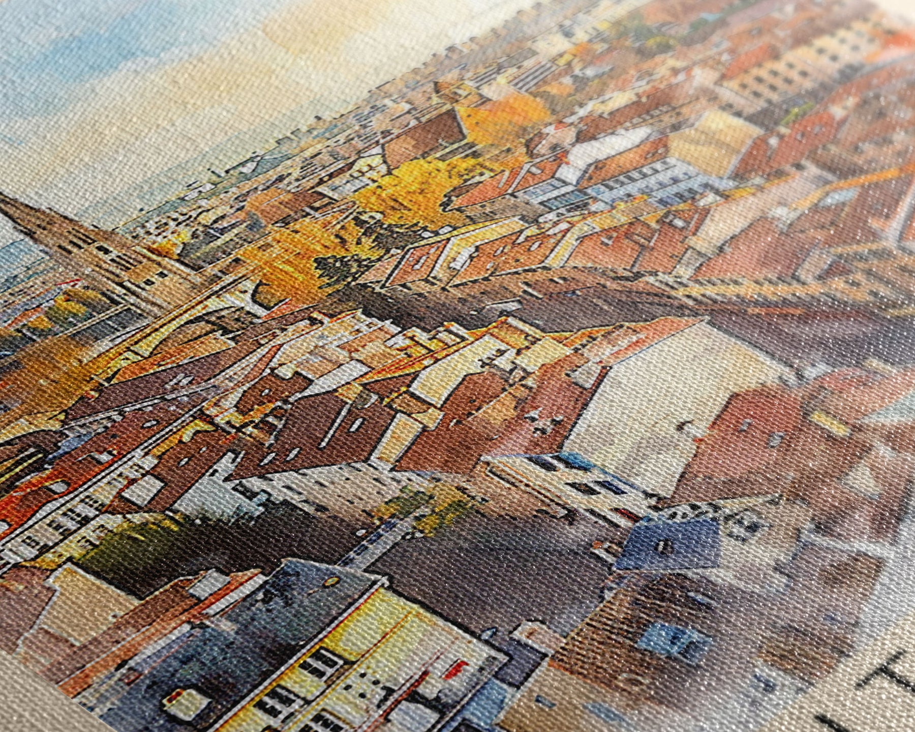 Most of our canvases are made in the USA, with the exception of canvases ordered with the light oak unstained frames, and any large canvases (24x48, 30x60, 16x48 and 20x60) ordered WITH a frame. These are temporarily made in and shipped from Europe, while we try to find a more consistent supplier in the USA.