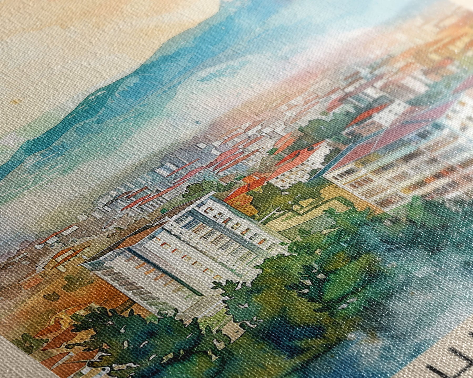 Most of our canvases are made in the USA, with the exception of canvases ordered with the light oak unstained frames, and any large canvases (24x48, 30x60, 16x48 and 20x60) ordered WITH a frame. These are temporarily made in and shipped from Europe, while we try to find a more consistent supplier in the USA.