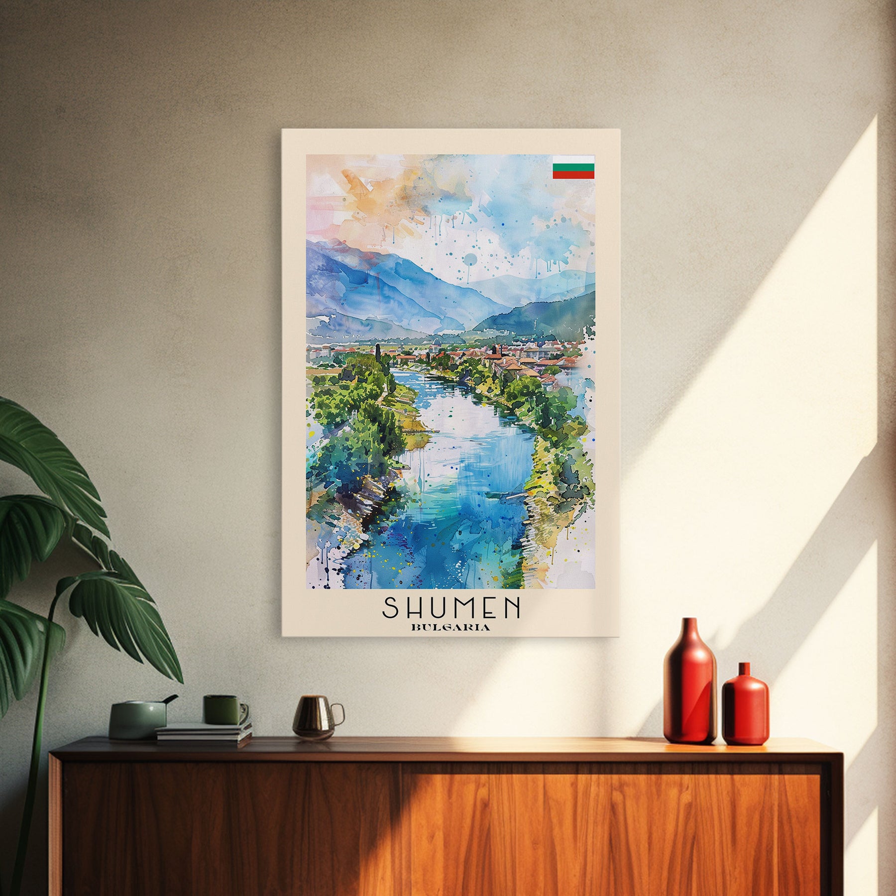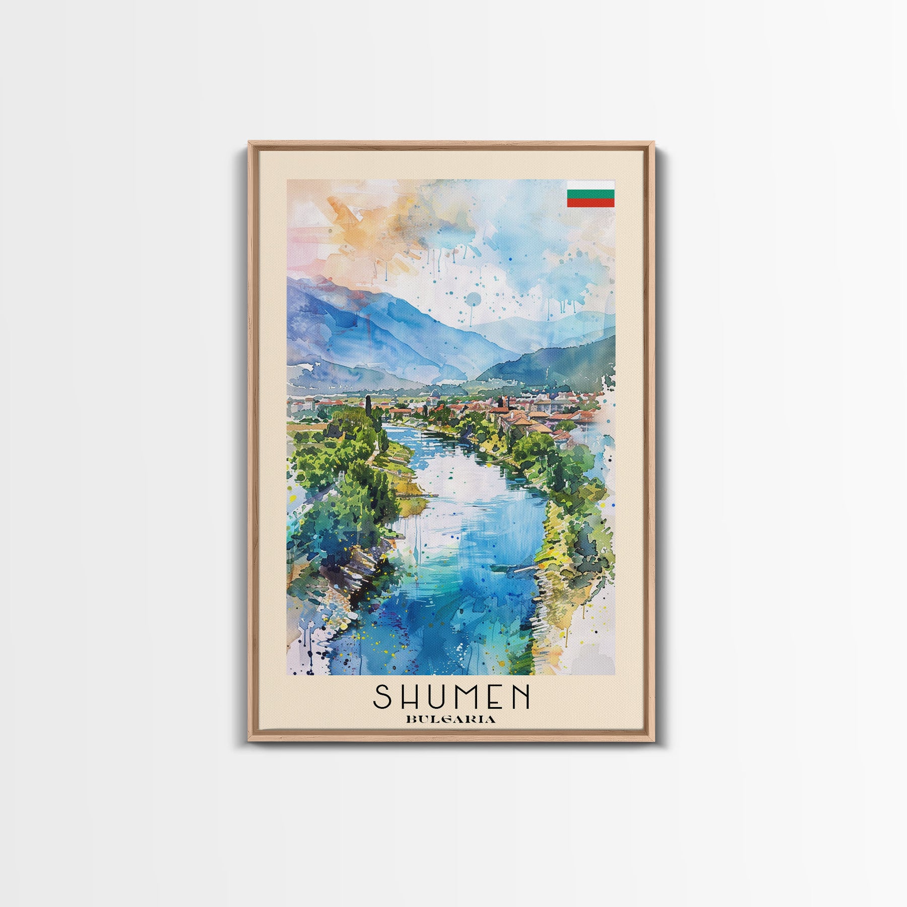 Shumen Bulgaria Travel Poster Framed Canvas Print, Watercolor Painting, Scenic Wall Art, Home Decor, Bulgarian Landscape, Classic Art