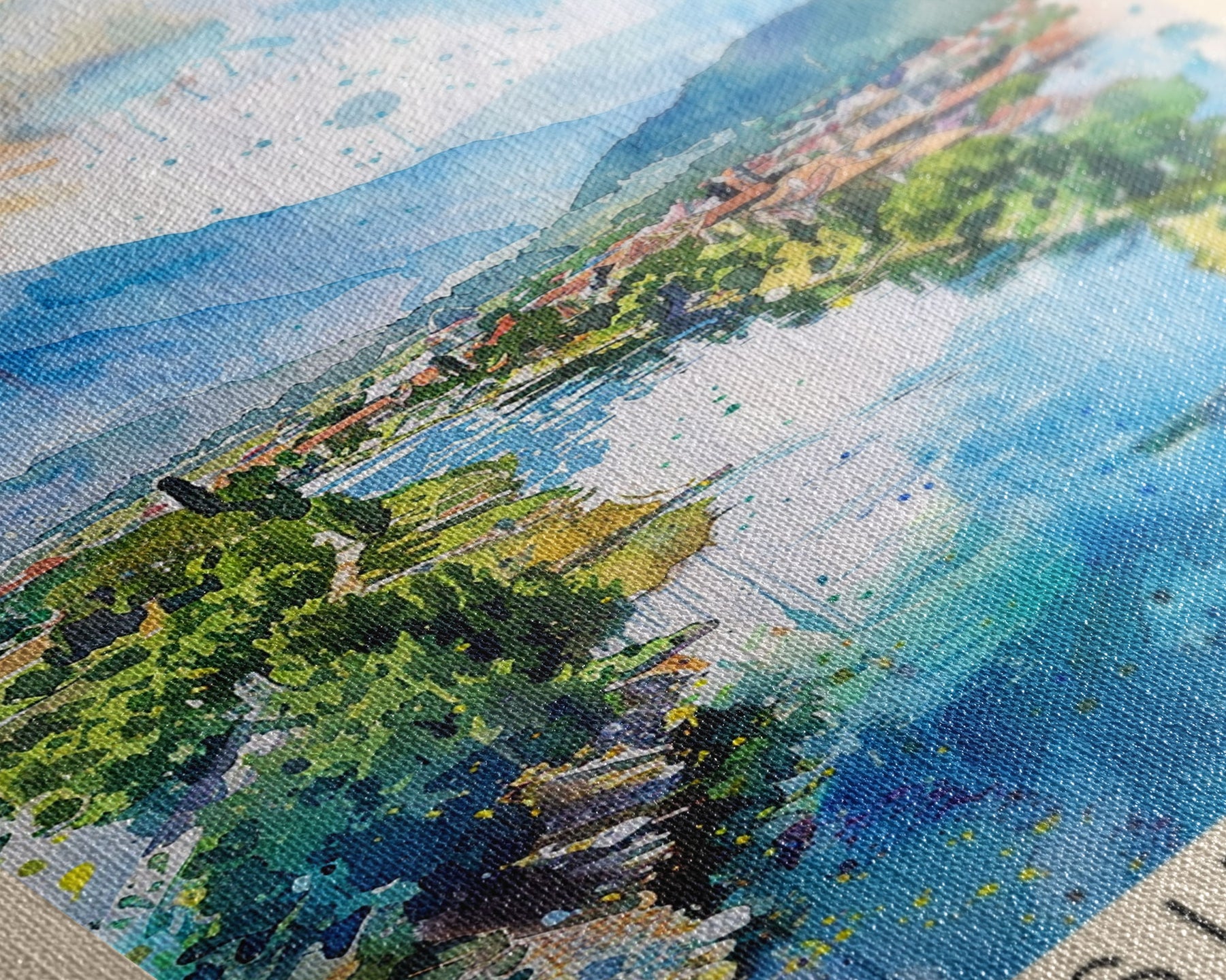 Most of our canvases are made in the USA, with the exception of canvases ordered with the light oak unstained frames, and any large canvases (24x48, 30x60, 16x48 and 20x60) ordered WITH a frame. These are temporarily made in and shipped from Europe, while we try to find a more consistent supplier in the USA.