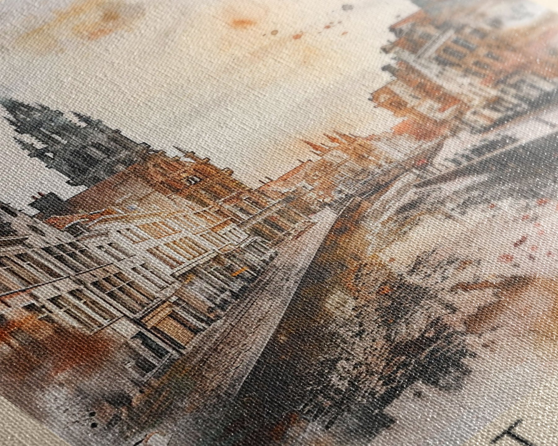 Most of our canvases are made in the USA, with the exception of canvases ordered with the light oak unstained frames, and any large canvases (24x48, 30x60, 16x48 and 20x60) ordered WITH a frame. These are temporarily made in and shipped from Europe, while we try to find a more consistent supplier in the USA.