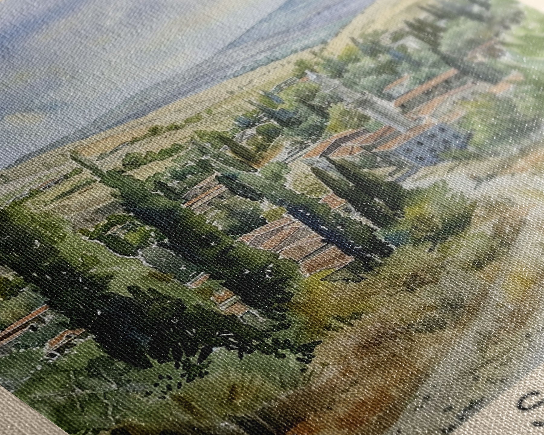 Most of our canvases are made in the USA, with the exception of canvases ordered with the light oak unstained frames, and any large canvases (24x48, 30x60, 16x48 and 20x60) ordered WITH a frame. These are temporarily made in and shipped from Europe, while we try to find a more consistent supplier in the USA.