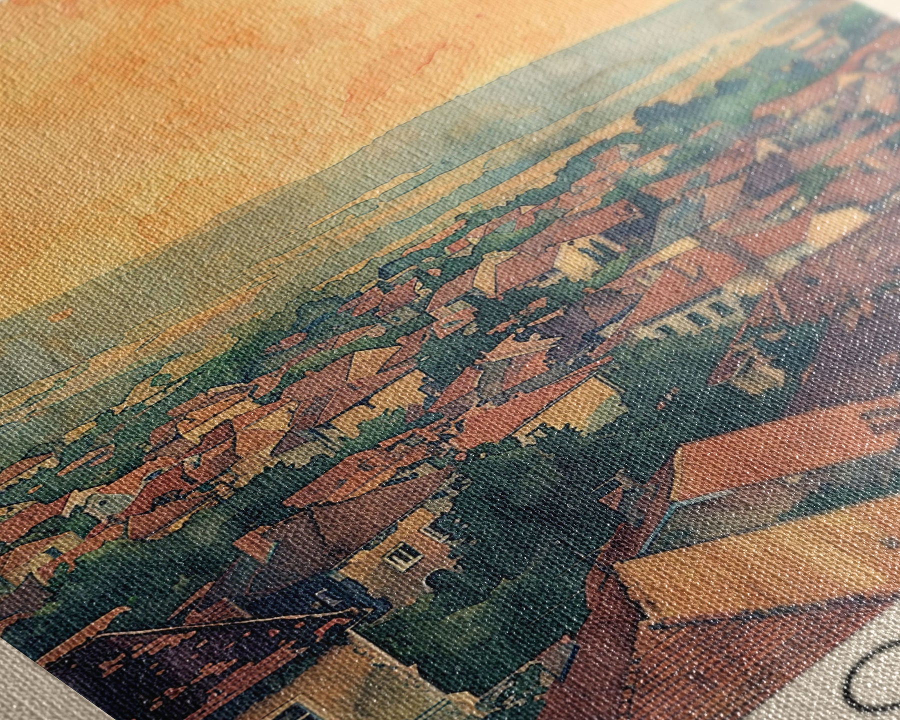 Most of our canvases are made in the USA, with the exception of canvases ordered with the light oak unstained frames, and any large canvases (24x48, 30x60, 16x48 and 20x60) ordered WITH a frame. These are temporarily made in and shipped from Europe, while we try to find a more consistent supplier in the USA.