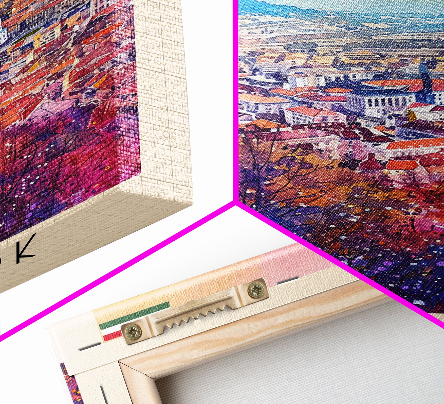 Most of our canvases are made in the USA, with the exception of canvases ordered with the light oak unstained frames, and any large canvases (24x48, 30x60, 16x48 and 20x60) ordered WITH a frame. These are temporarily made in and shipped from Europe, while we try to find a more consistent supplier in the USA.