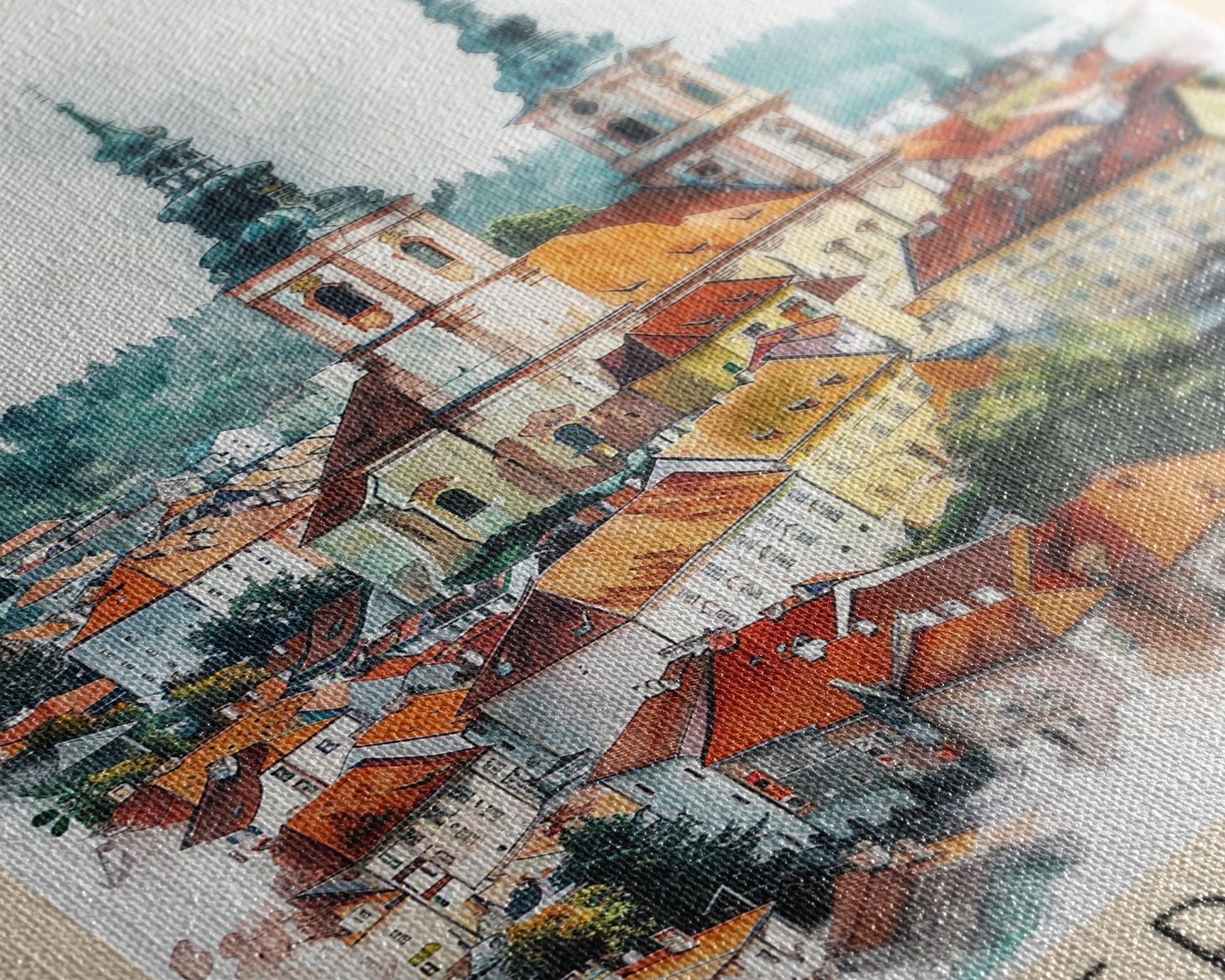 Most of our canvases are made in the USA, with the exception of canvases ordered with the light oak unstained frames, and any large canvases (24x48, 30x60, 16x48 and 20x60) ordered WITH a frame. These are temporarily made in and shipped from Europe, while we try to find a more consistent supplier in the USA.