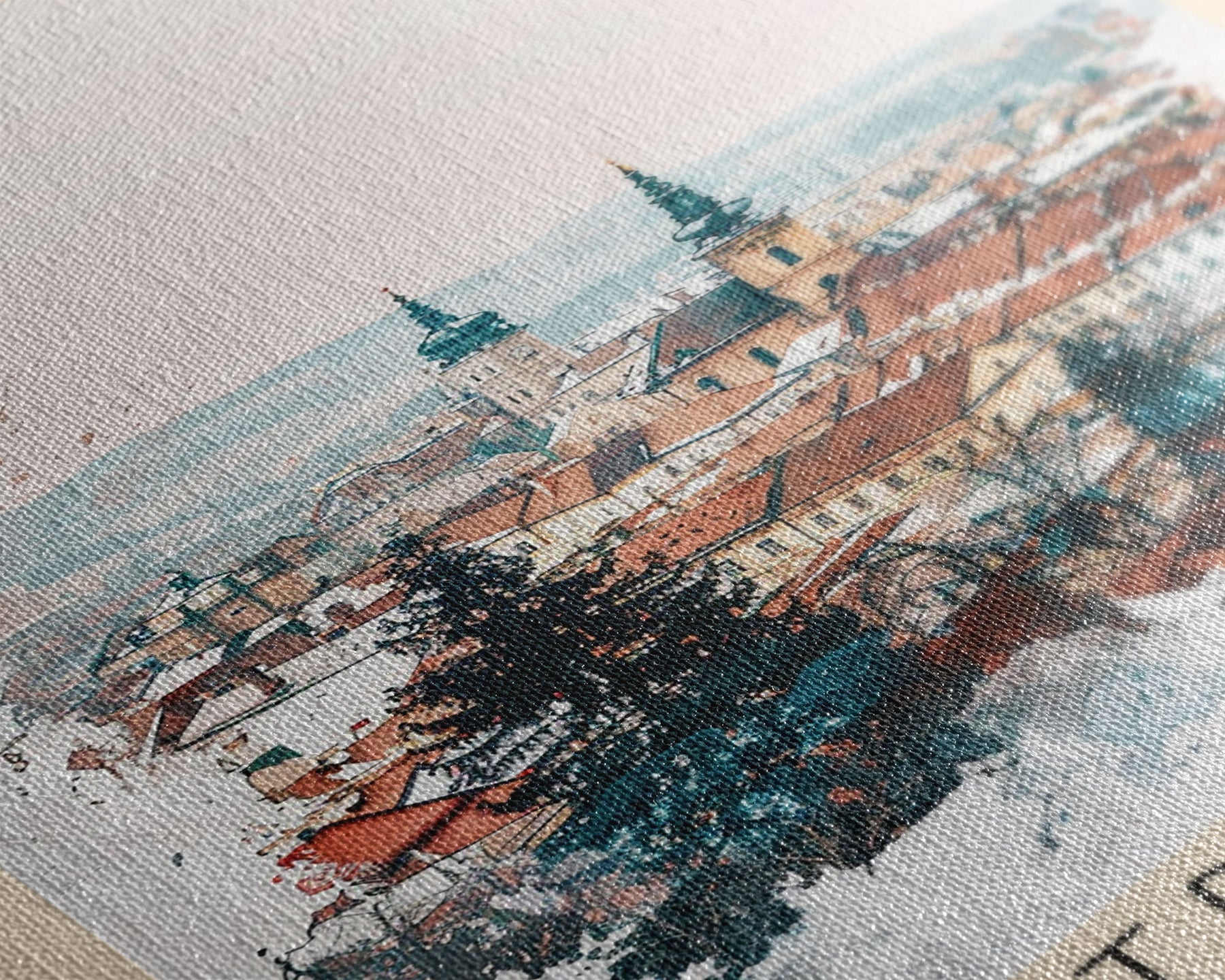 Most of our canvases are made in the USA, with the exception of canvases ordered with the light oak unstained frames, and any large canvases (24x48, 30x60, 16x48 and 20x60) ordered WITH a frame. These are temporarily made in and shipped from Europe, while we try to find a more consistent supplier in the USA.