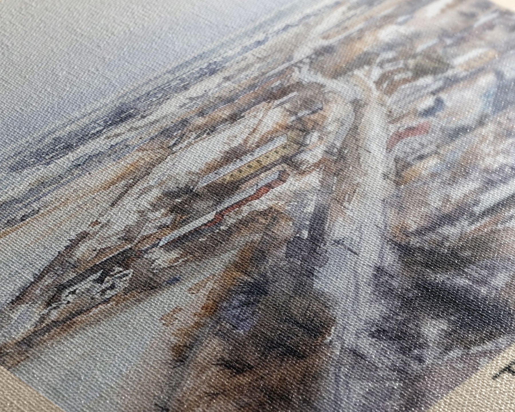 Most of our canvases are made in the USA, with the exception of canvases ordered with the light oak unstained frames, and any large canvases (24x48, 30x60, 16x48 and 20x60) ordered WITH a frame. These are temporarily made in and shipped from Europe, while we try to find a more consistent supplier in the USA.