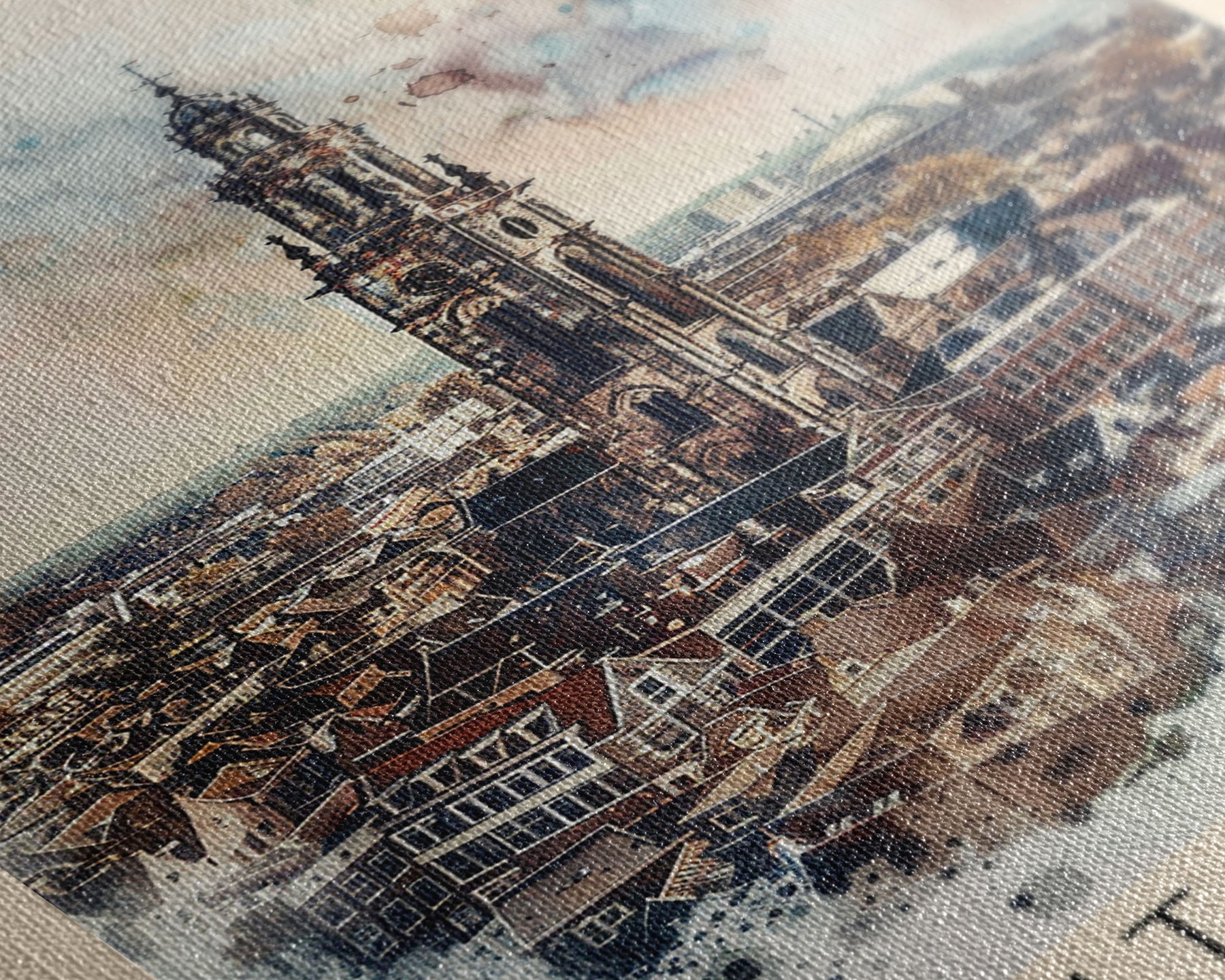 Most of our canvases are made in the USA, with the exception of canvases ordered with the light oak unstained frames, and any large canvases (24x48, 30x60, 16x48 and 20x60) ordered WITH a frame. These are temporarily made in and shipped from Europe, while we try to find a more consistent supplier in the USA.