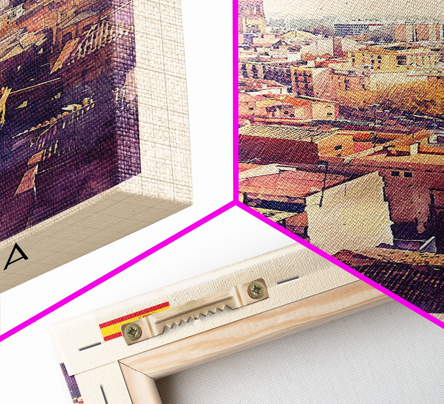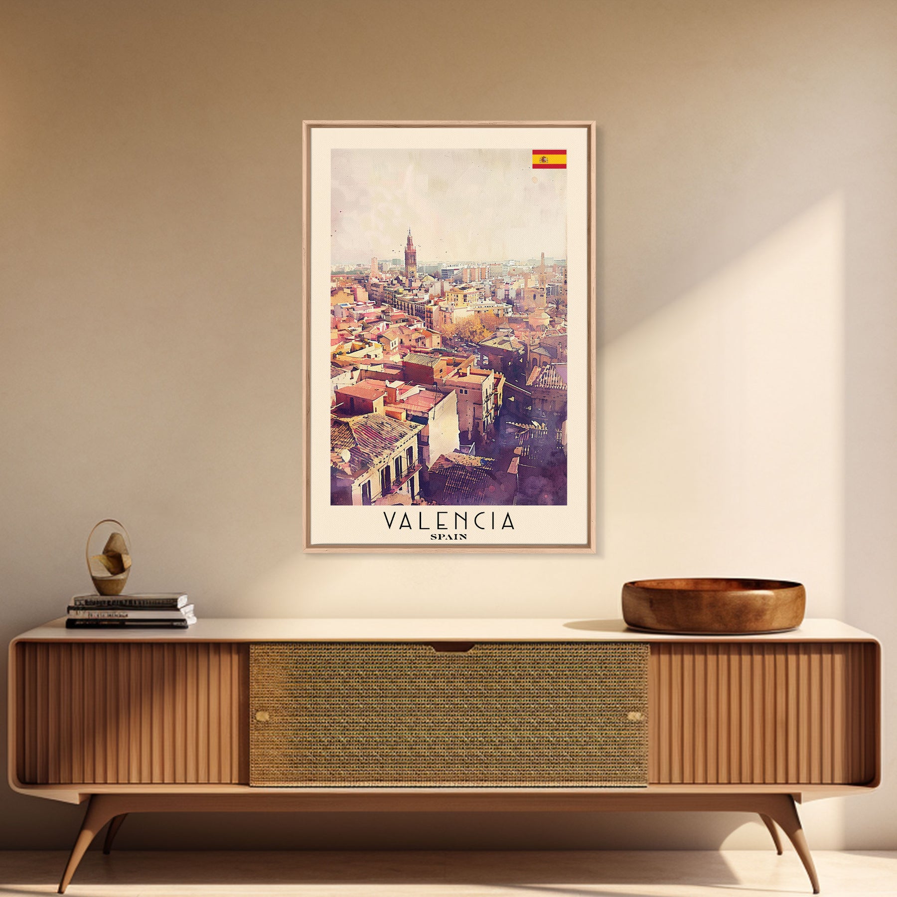 Valencia Spain Travel Poster Framed Canvas Print, Watercolor Painting, Coastal Wall Art, Home Decor, Spanish Seaside, Mediterranean Decor