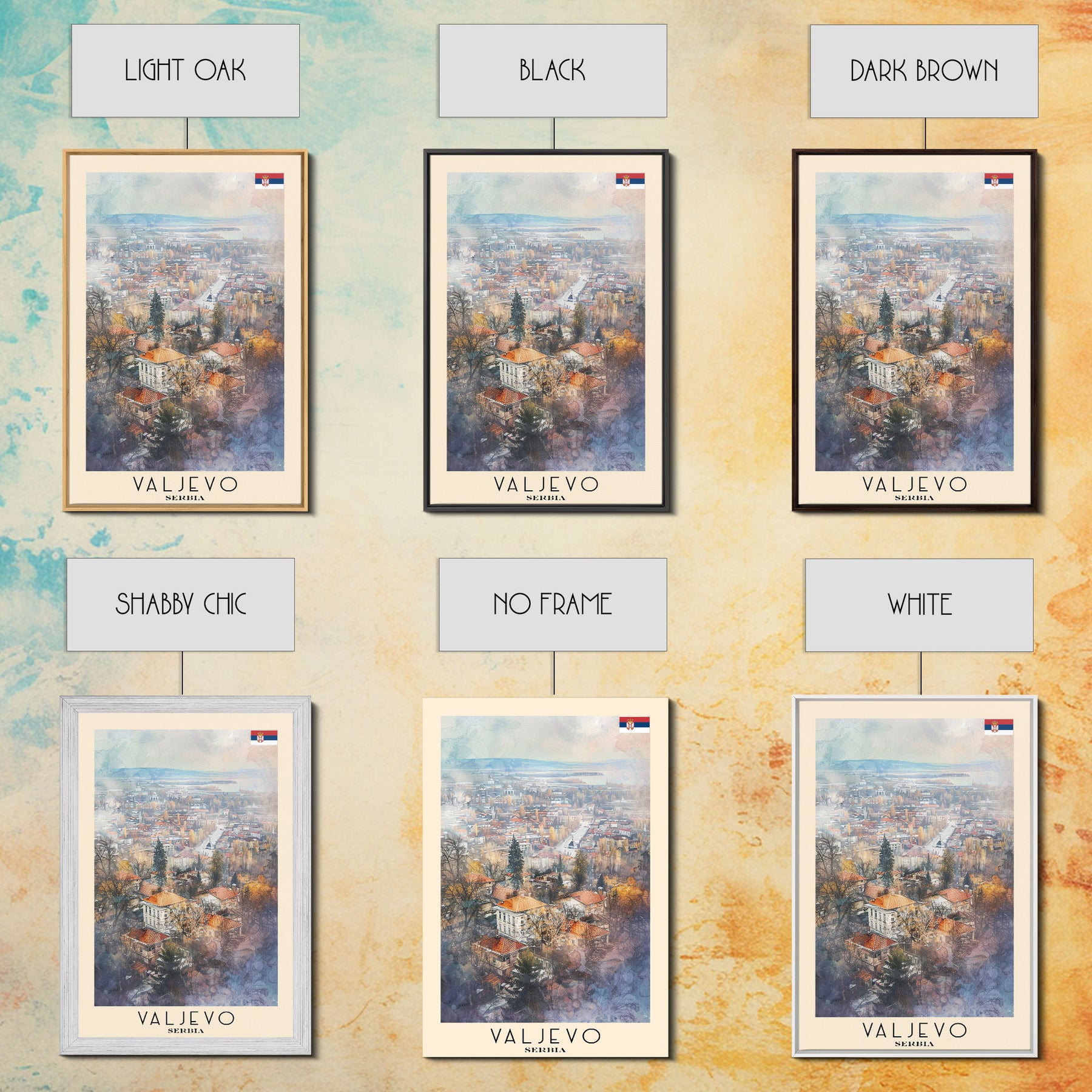 Valjevo Serbia Travel Poster Framed Canvas Print, Watercolor Painting, Scenic Wall Art, Home Decor, Serbian Landscape, Unique Art