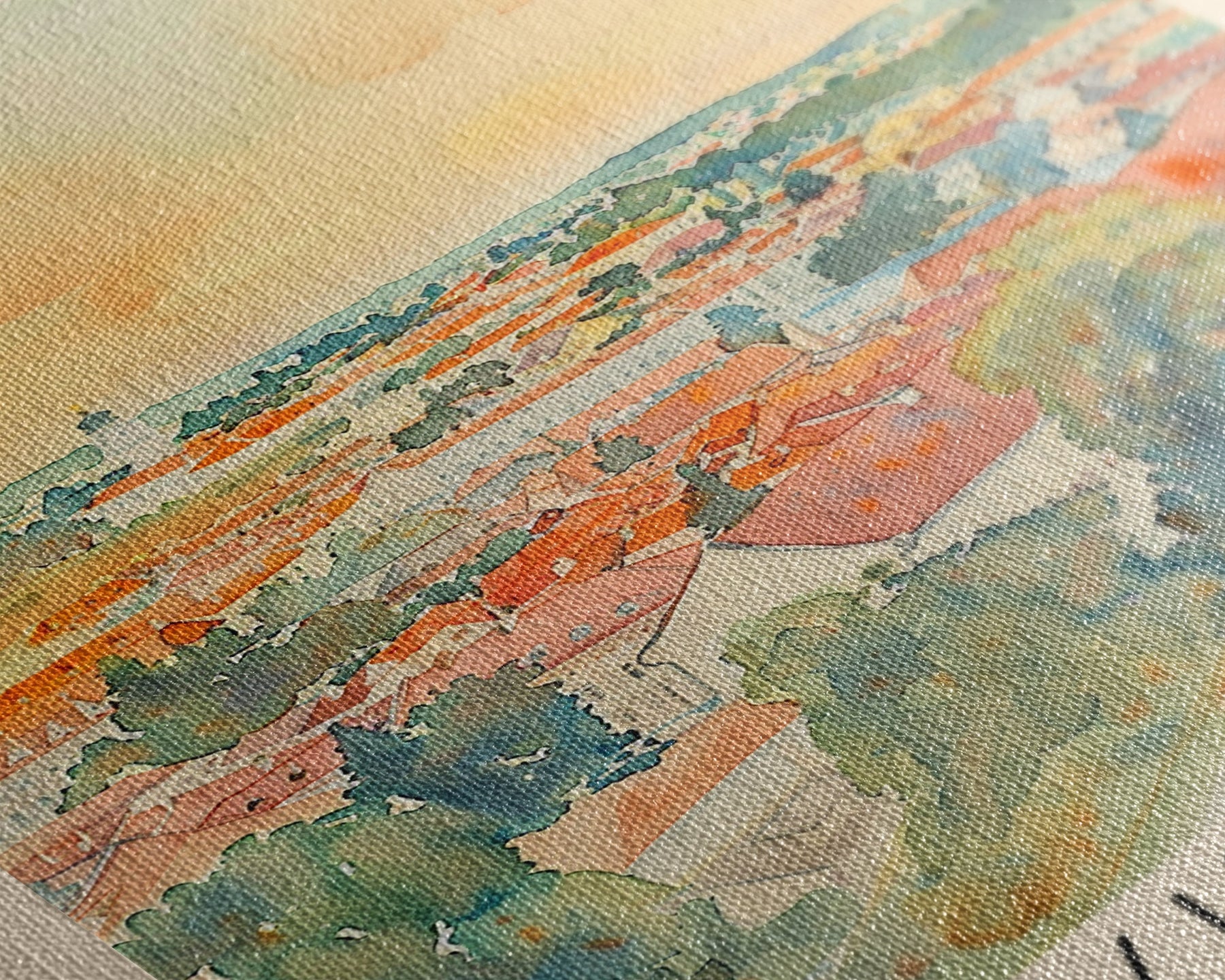 Vilnius Lithuania Travel Poster Framed Canvas Print, Watercolor Painting, Historic Wall Art, Home Decor, Lithuanian Architecture, Heritage Art