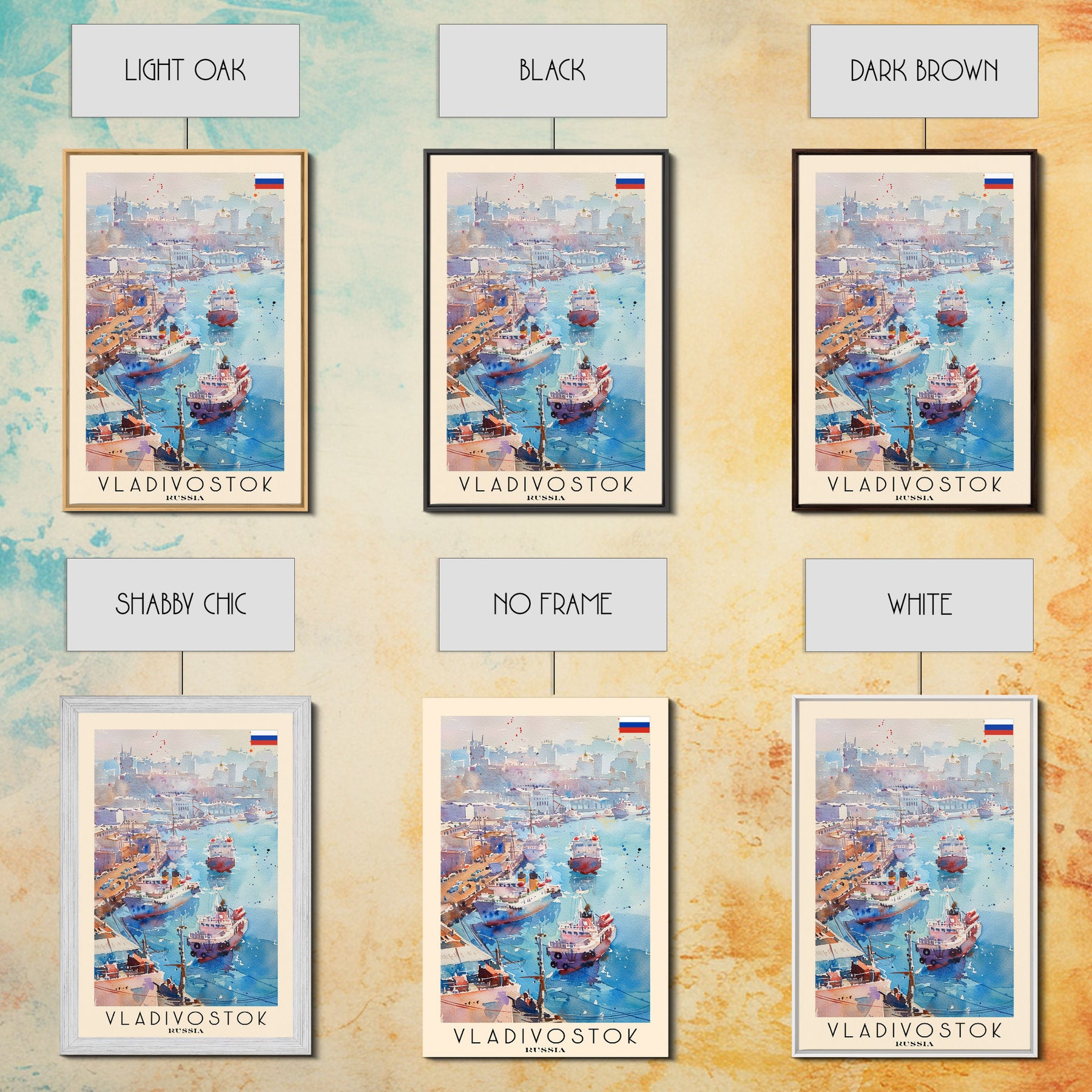 Vladivostok Russia Travel Poster Framed Canvas Print, Watercolor Painting, Coastal Wall Art, Home Decor, Russian Seaside, Nautical Art