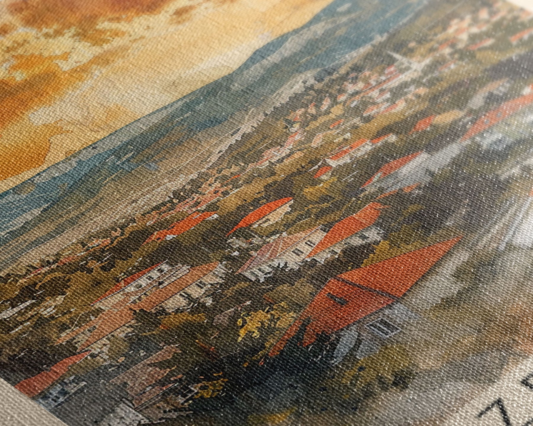 Most of our canvases are made in the USA, with the exception of canvases ordered with the light oak unstained frames, and any large canvases (24x48, 30x60, 16x48 and 20x60) ordered WITH a frame. These are temporarily made in and shipped from Europe, while we try to find a more consistent supplier in the USA.