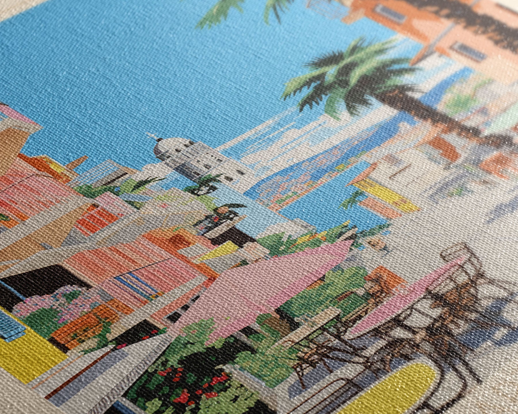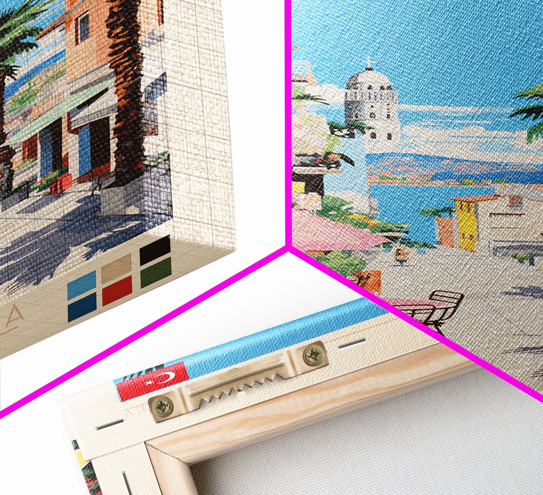 Most of our canvases are made in the USA, with the exception of canvases ordered with the light oak unstained frames, and any large canvases (24x48, 30x60, 16x48 and 20x60) ordered WITH a frame. These are temporarily made in and shipped from Europe, while we try to find a more consistent supplier in the USA.