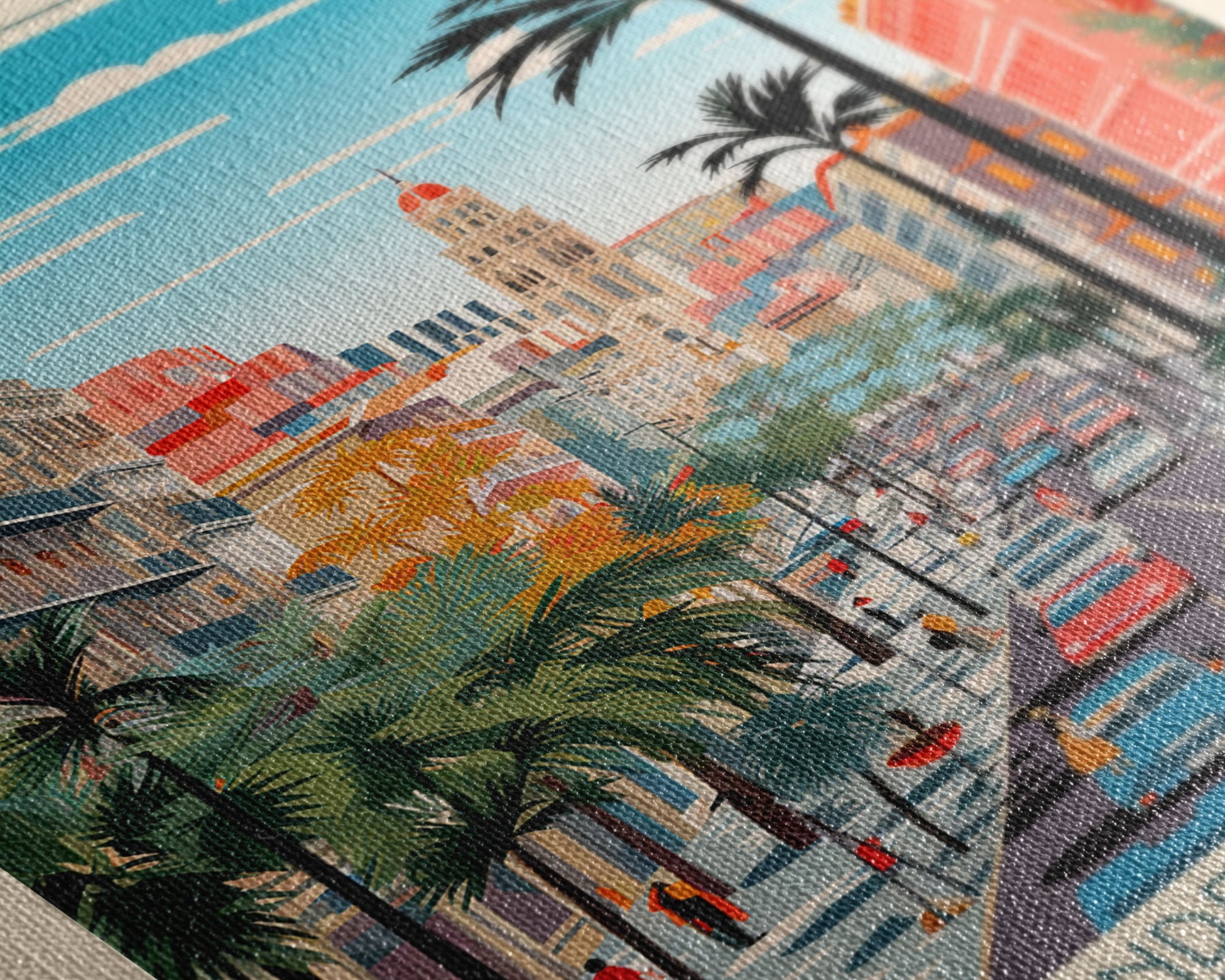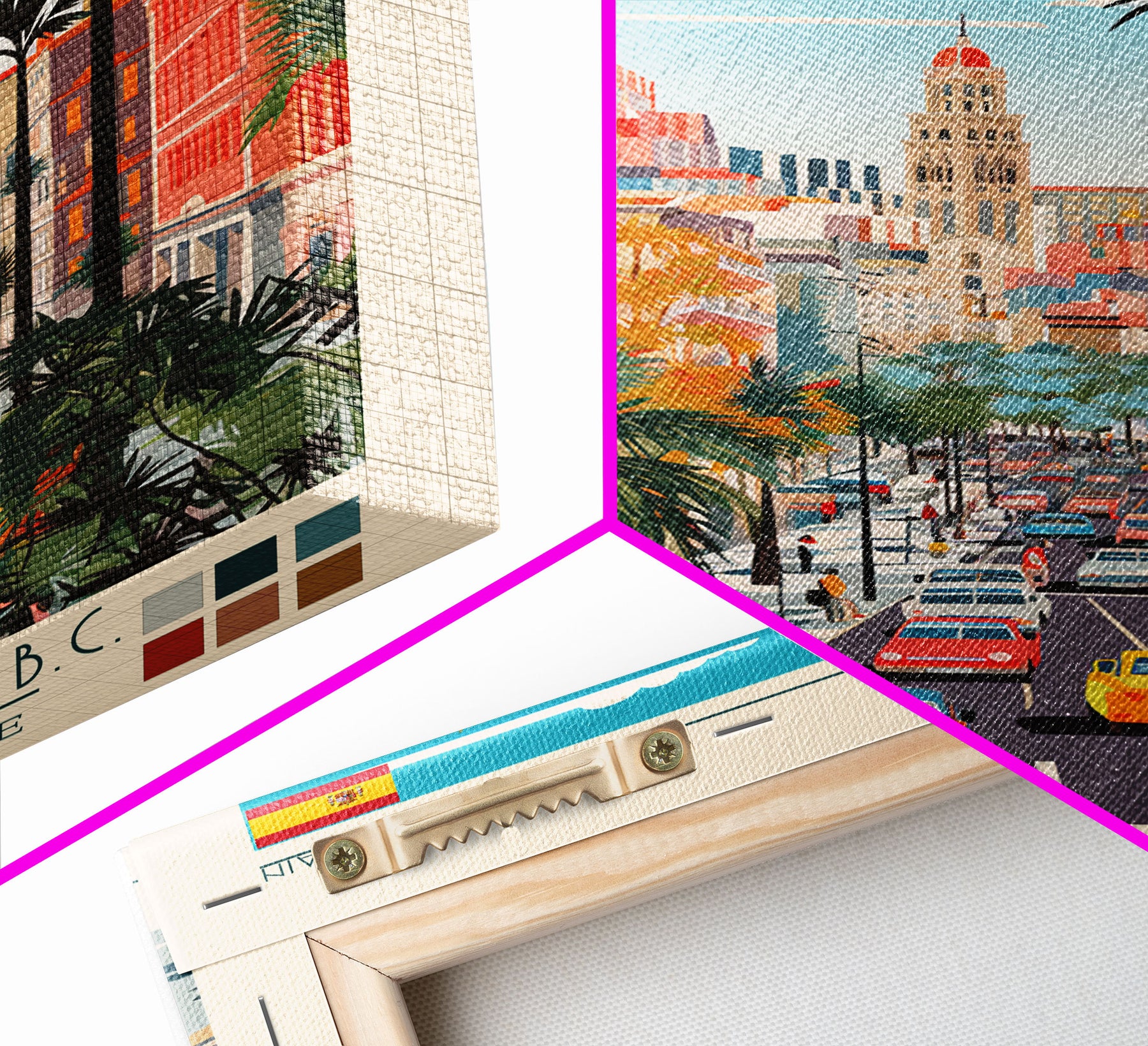 Barcelona Spain Travel Poster Framed Canvas Print, Midcentury Modern Art, Pop Art Wall Decor, Home Decor, Vacation Gift, Living Room Art