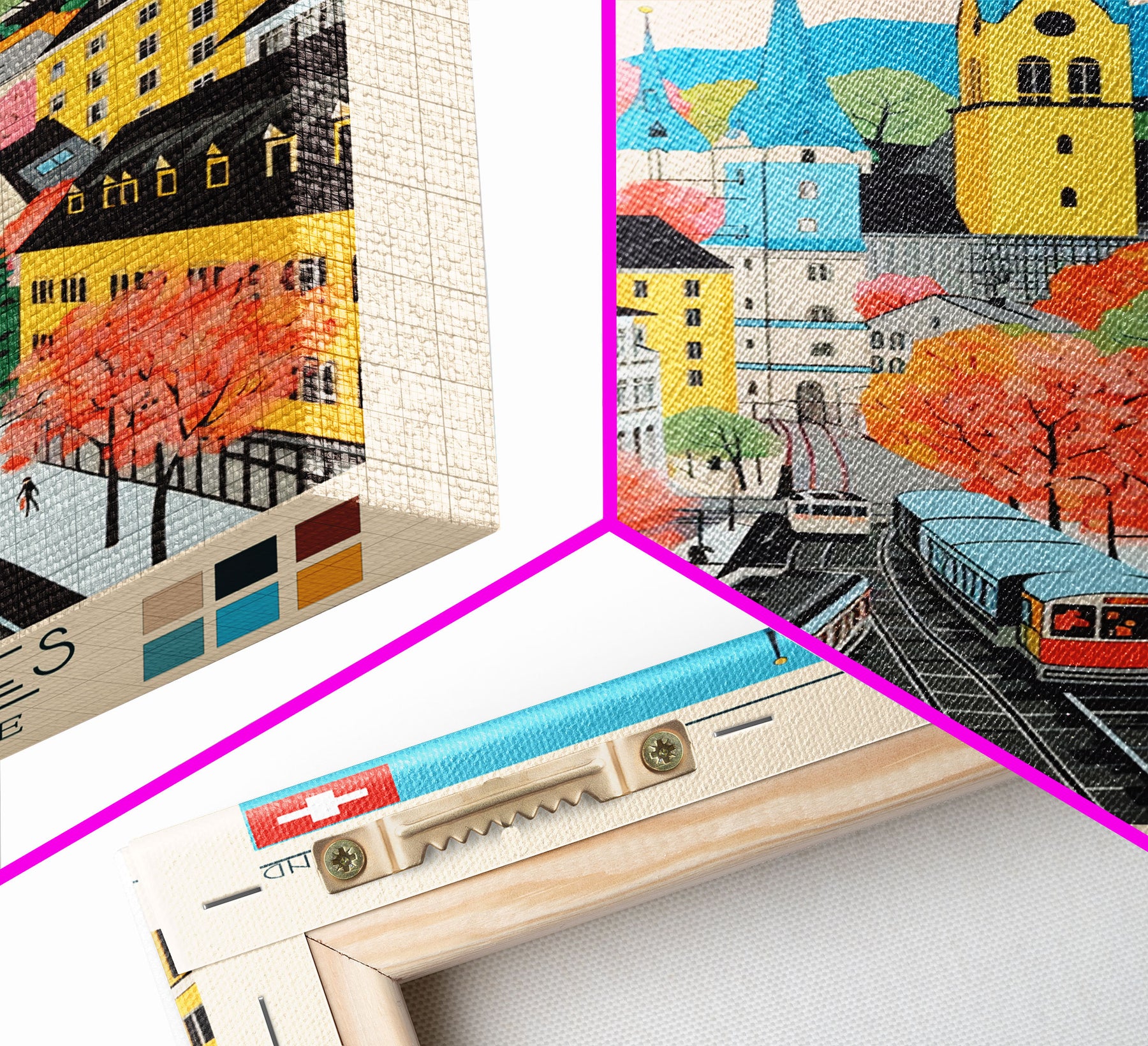 Basel Switzerland Travel Poster Framed Canvas Print, Midcentury Modern Art, Pop Art Wall Decor, Home Decor, Vacation Gift, Living Room Art