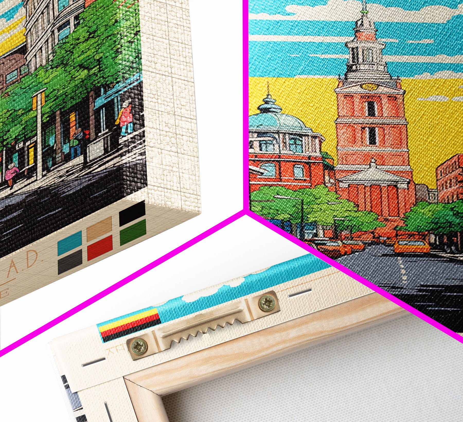 *SHIPPING: Every canvas is carefully wrapped in bubble wrap and foam corner protectors, and shipped fully assembled and ready to hang with sawtooth hangers in a flat box. All you need is a hammer!