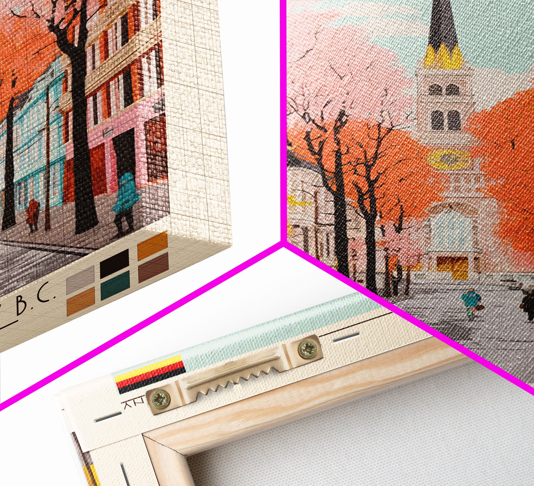 Most of our canvases are made in the USA, with the exception of canvases ordered with the light oak unstained frames, and any large canvases (24x48, 30x60, 16x48 and 20x60) ordered WITH a frame. These are temporarily made in and shipped from Europe, while we try to find a more consistent supplier in the USA.