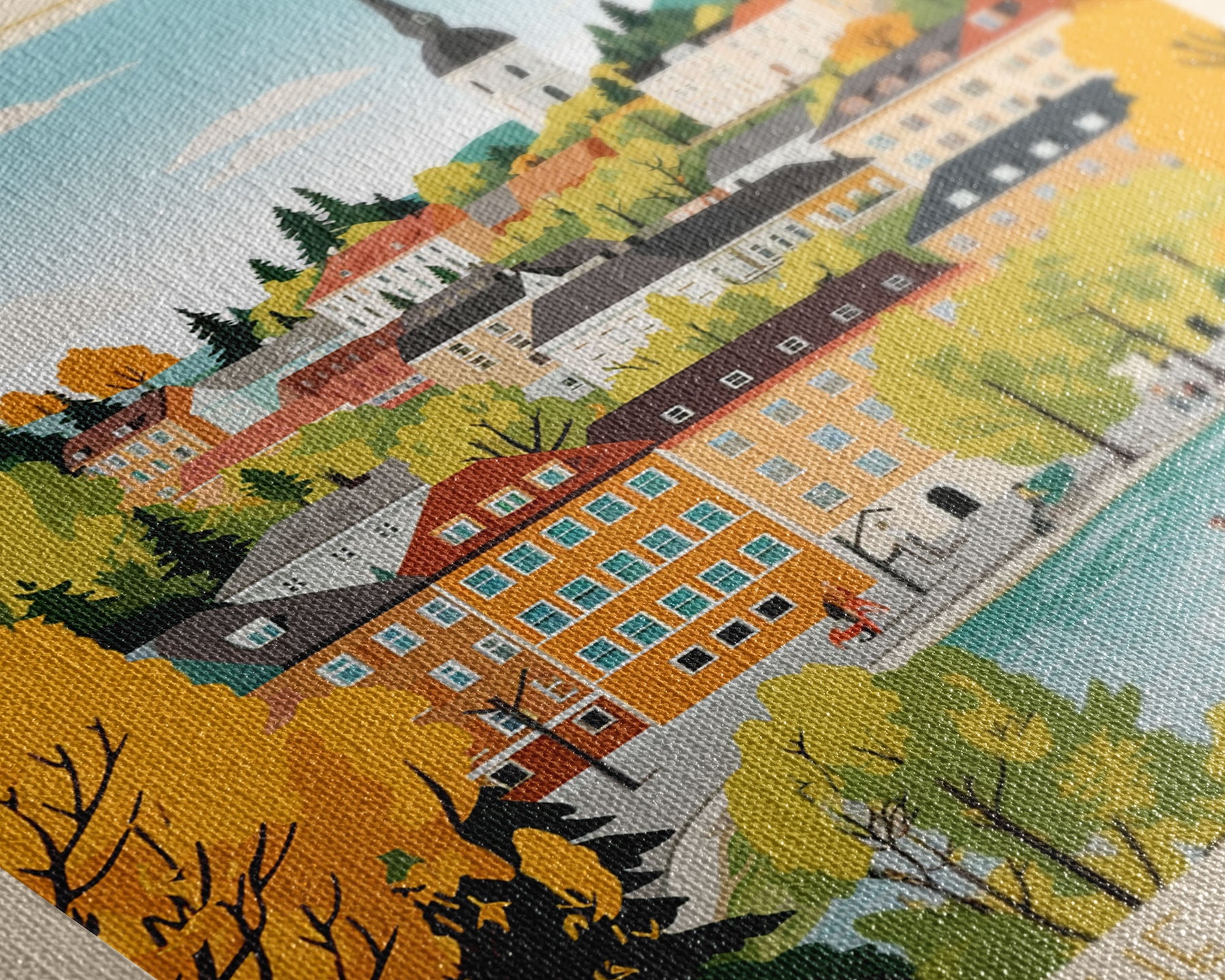 Most of our canvases are made in the USA, with the exception of canvases ordered with the light oak unstained frames, and any large canvases (24x48, 30x60, 16x48 and 20x60) ordered WITH a frame. These are temporarily made in and shipped from Europe, while we try to find a more consistent supplier in the USA.