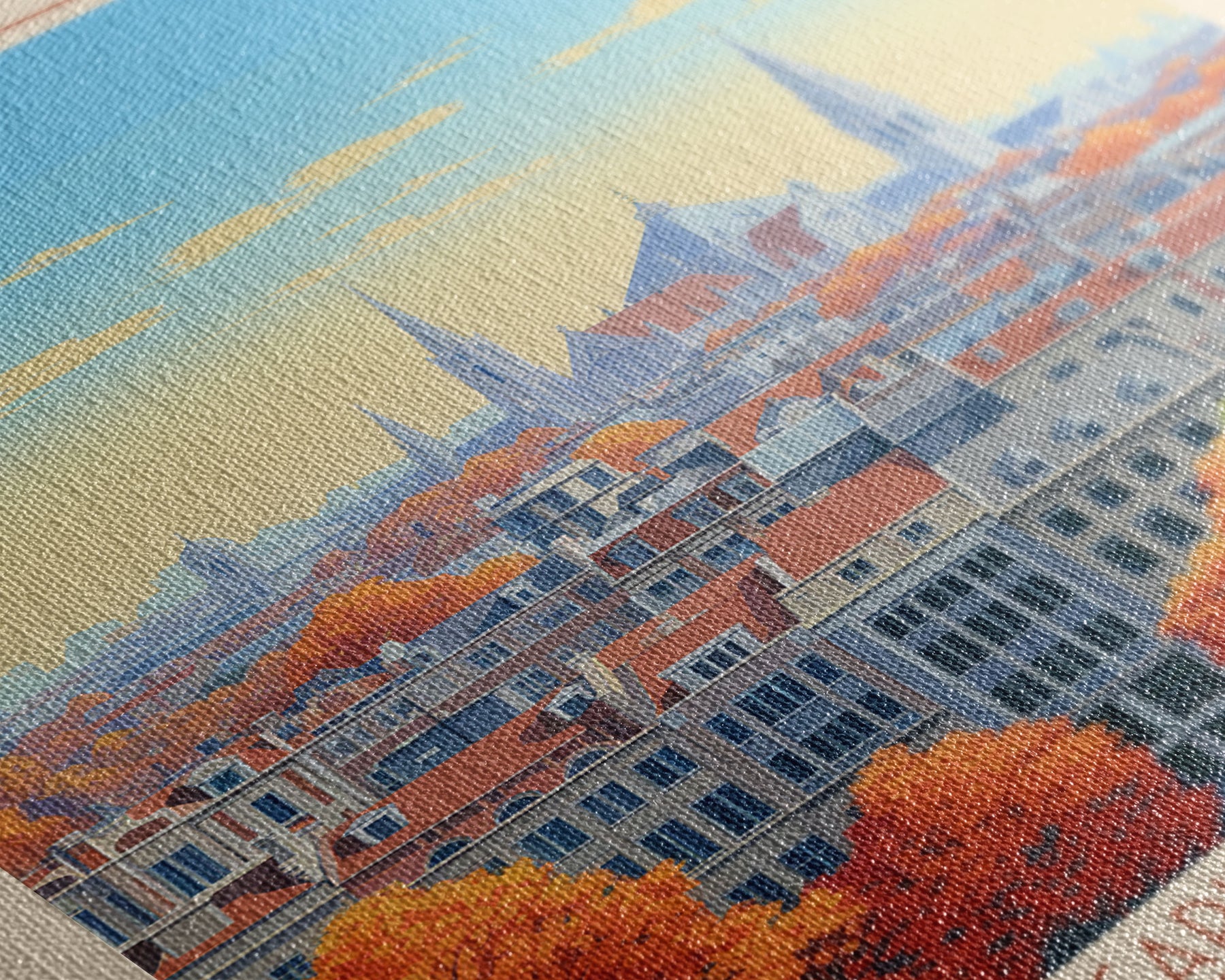 Most of our canvases are made in the USA, with the exception of canvases ordered with the light oak unstained frames, and any large canvases (24x48, 30x60, 16x48 and 20x60) ordered WITH a frame. These are temporarily made in and shipped from Europe, while we try to find a more consistent supplier in the USA.