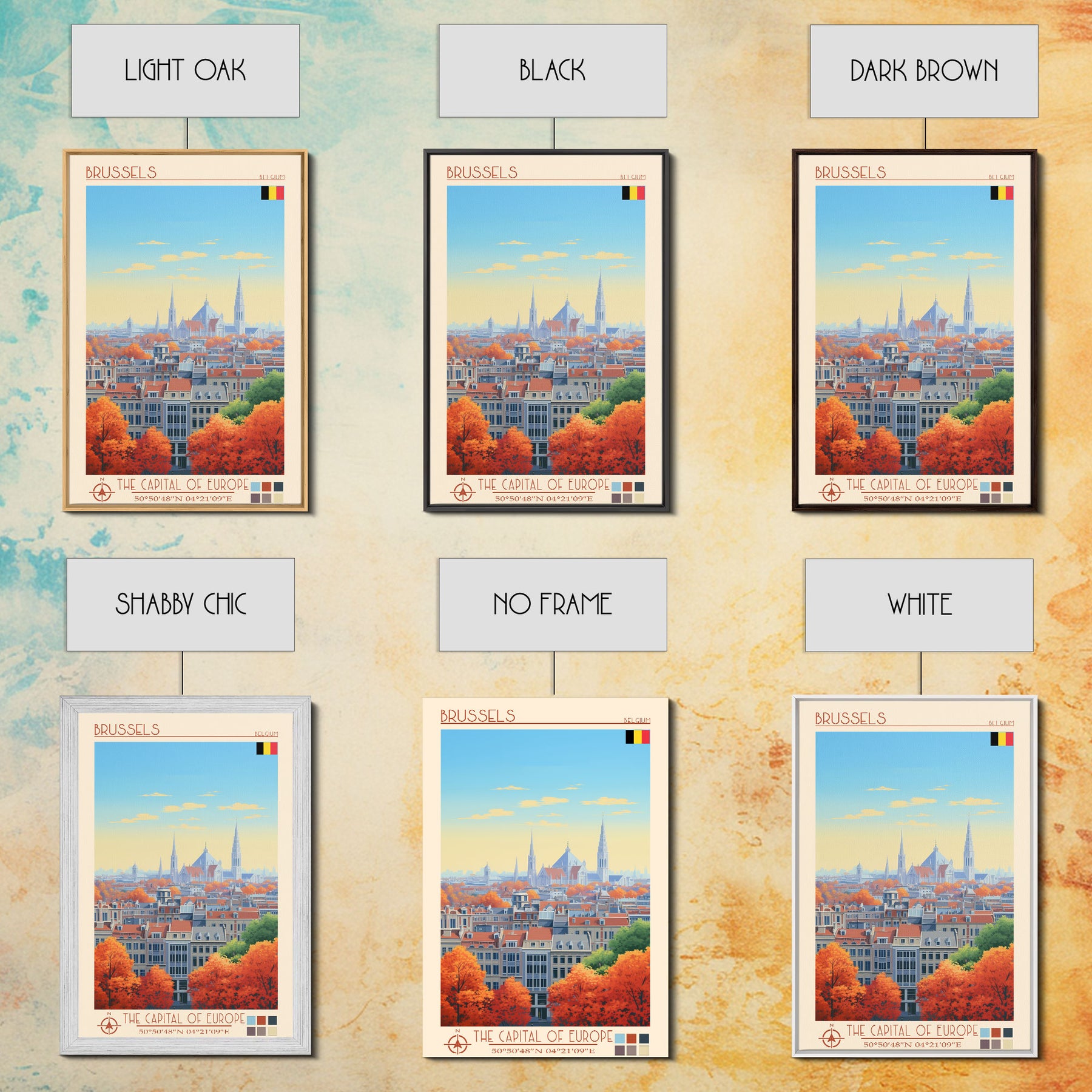 Brussels Belgium Travel Poster Framed Canvas Print, Midcentury Modern Art, Pop Art Wall Decor, Home Decor, Vacation Gift, Living Room Art