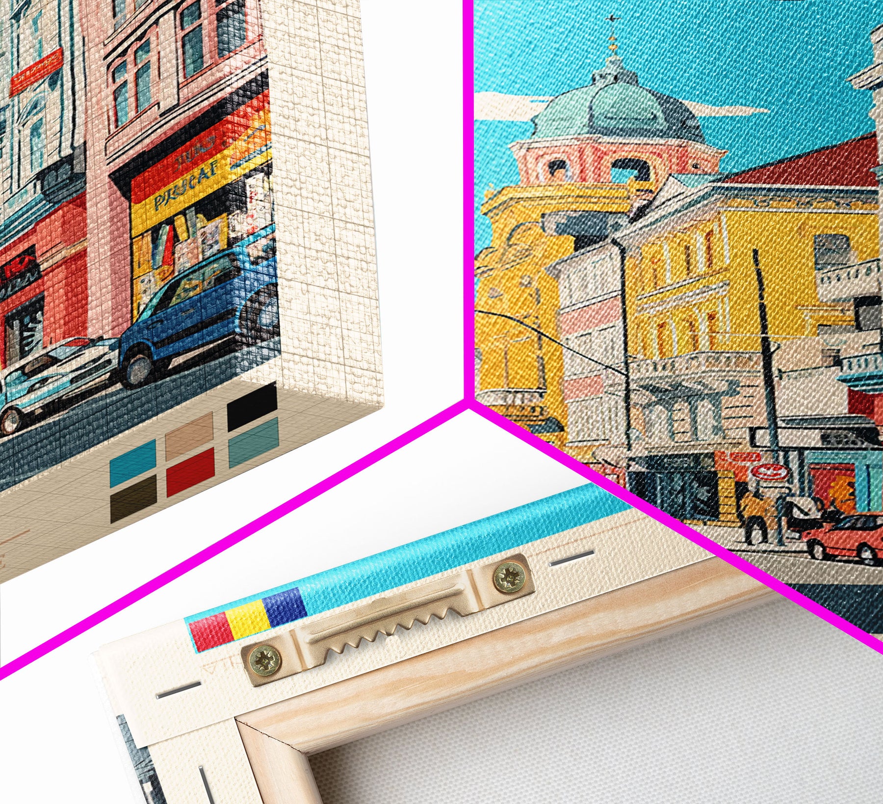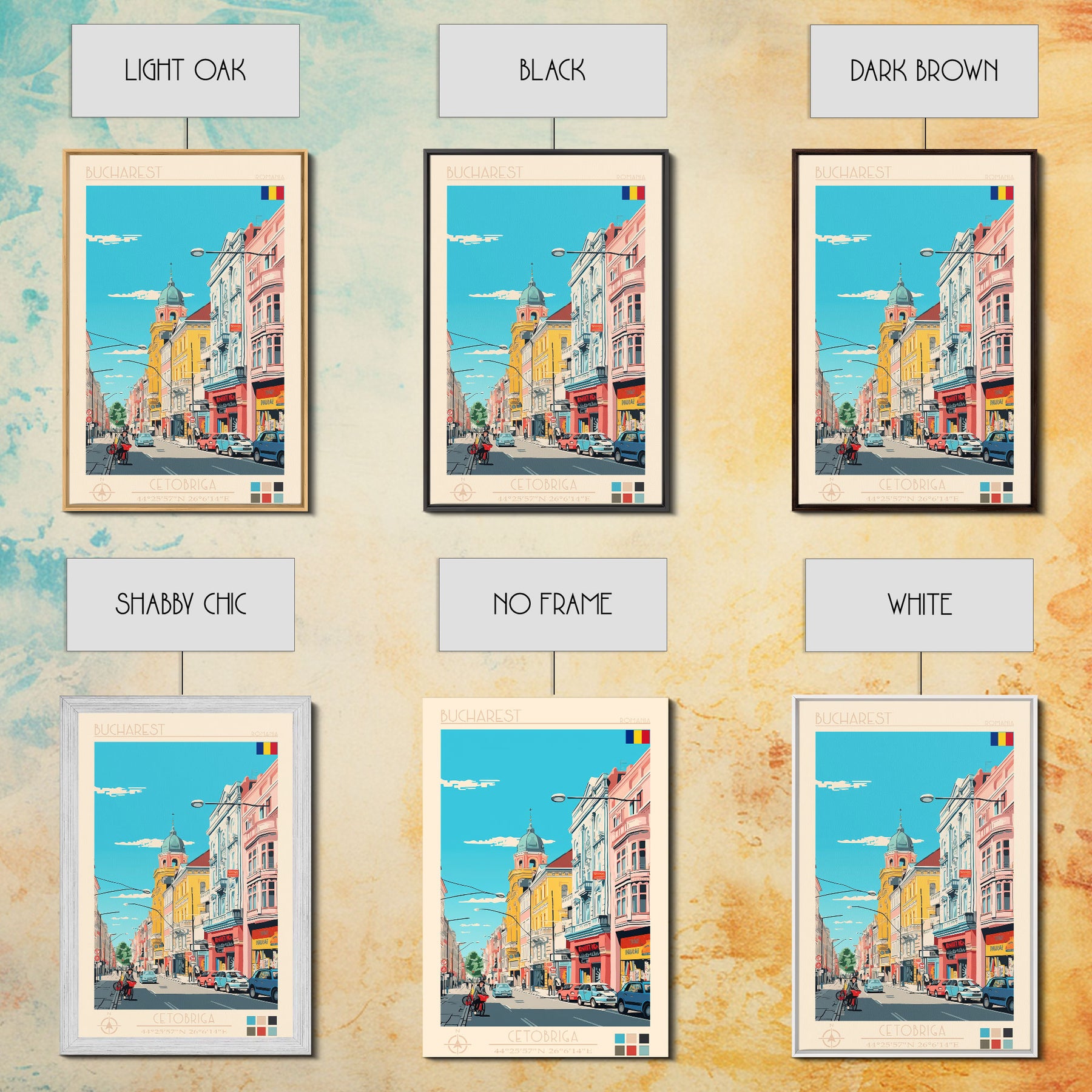 Bucharest Romania Travel Poster Framed Canvas Print, Midcentury Modern Art, Pop Art Wall Decor, Home Decor, Vacation Gift, Living Room Art