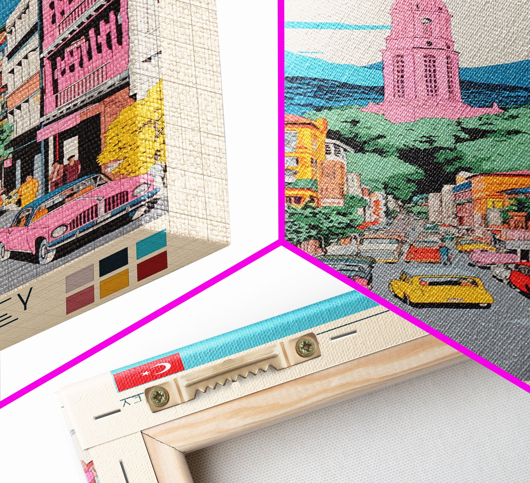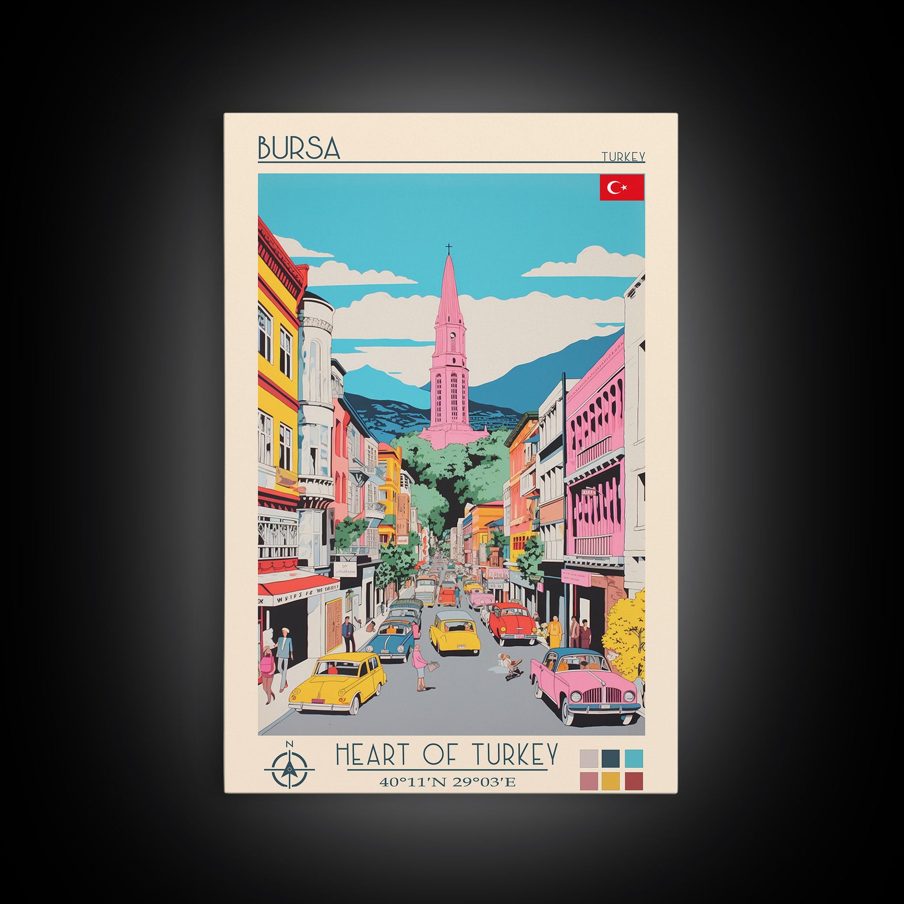 Bursa Turkey Travel Poster Framed Canvas Print, Midcentury Modern Art, Pop Art Wall Decor, Scenic Wall Art, Living Room Art