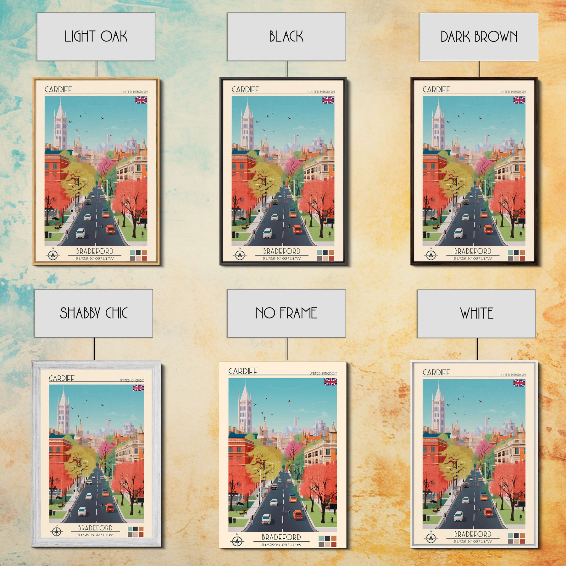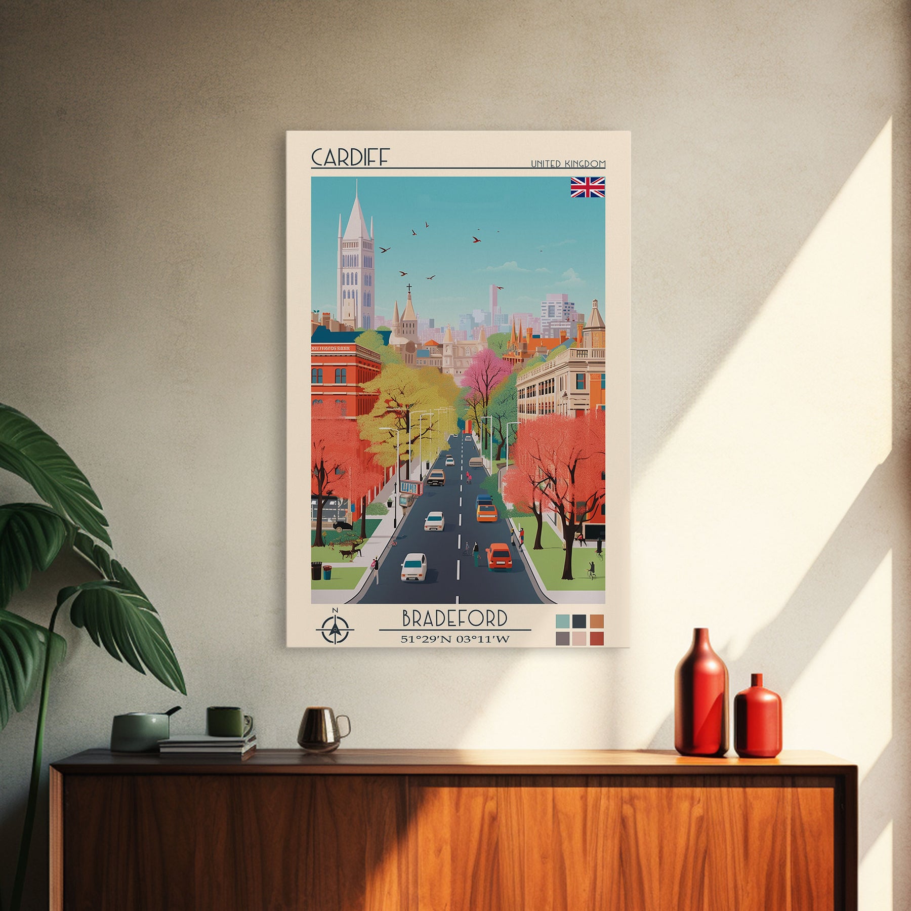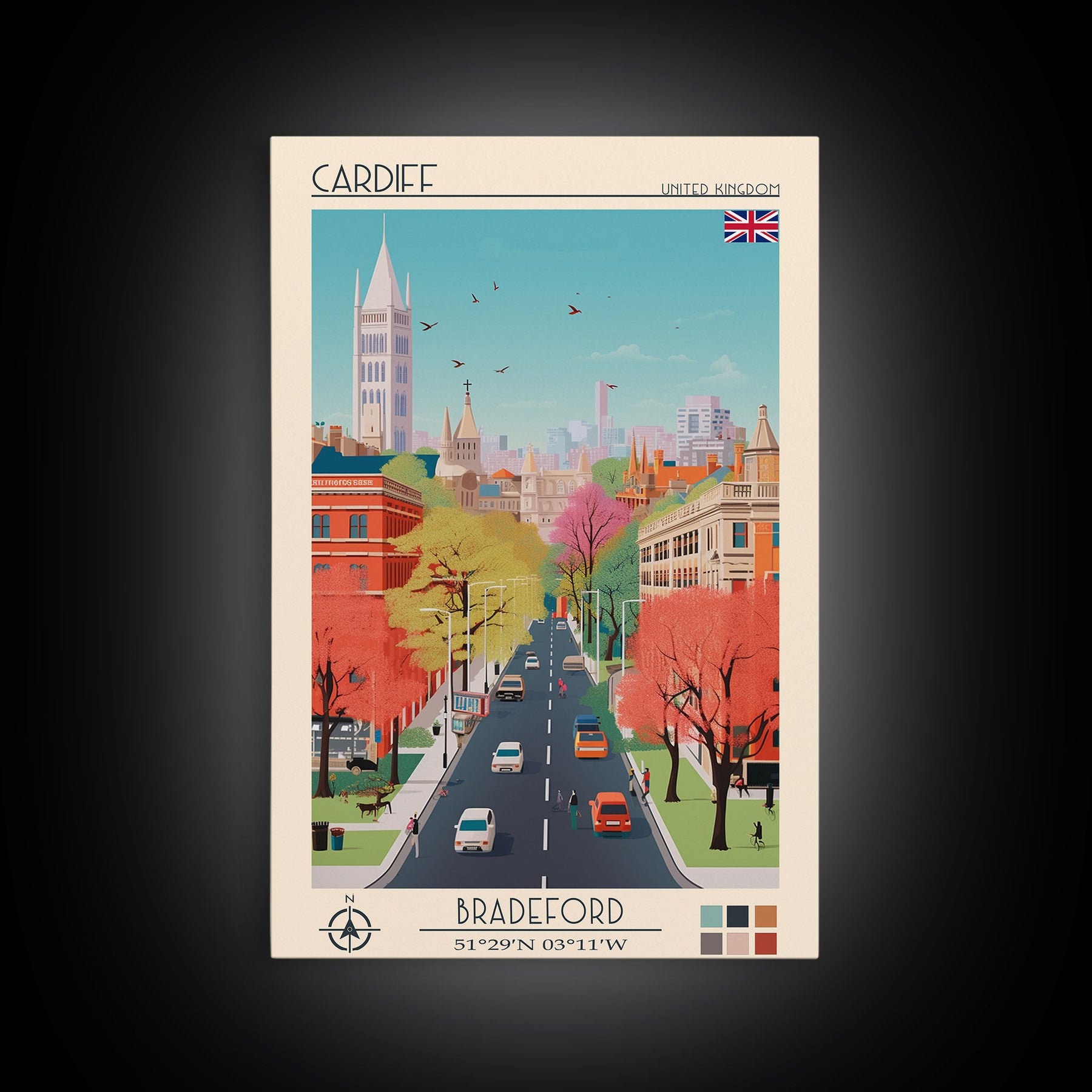 Cardiff United Kingdom Travel Poster Framed Canvas Print, Midcentury Modern Art, Pop Art Wall Decor, Home Decor, Vacation Gift, Living Room Art