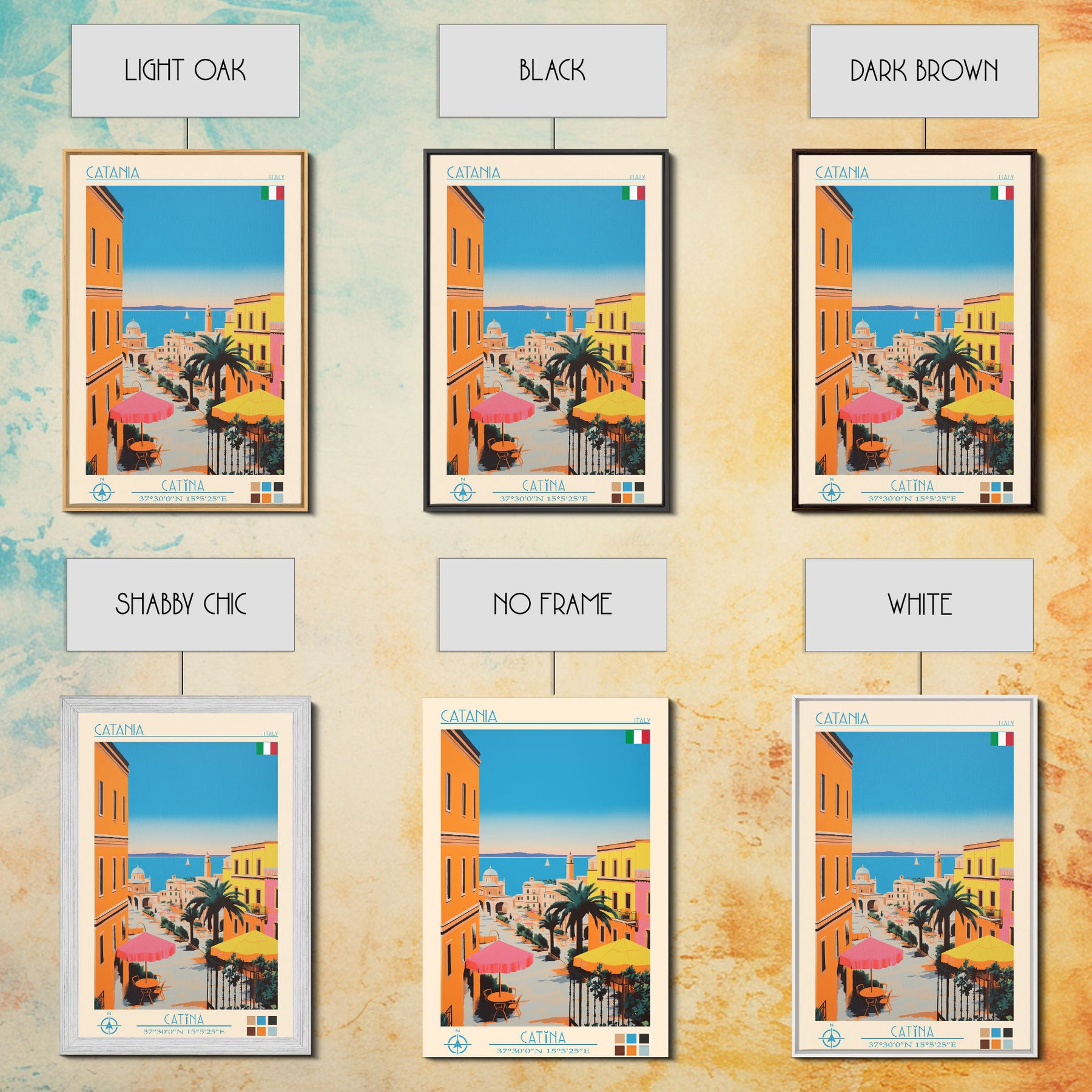Catania Italy Travel Poster Framed Canvas Print, Vintage Style, Pop Art Home Decor, Scenic Wall Art, Living Room Decoration, Artistic Gift