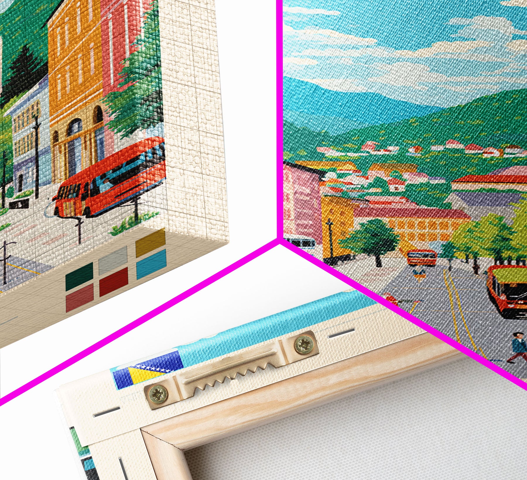 Hello and thank you for taking the time to view our modern high quality giclée artwork! We offer both posters and stretched canvas prints. Our posters are printed on Ultra Matte 60 lb / 230 GSM high quality photo paper, with a thickness of 10 mil. Our canvases are printed on museum grade 350 GSM canvas material with ECO friendly archival grade ink, then hand stretched and stapled over premium, FSC certified and shrink resistant frames. Designed and built to last a lifetime.