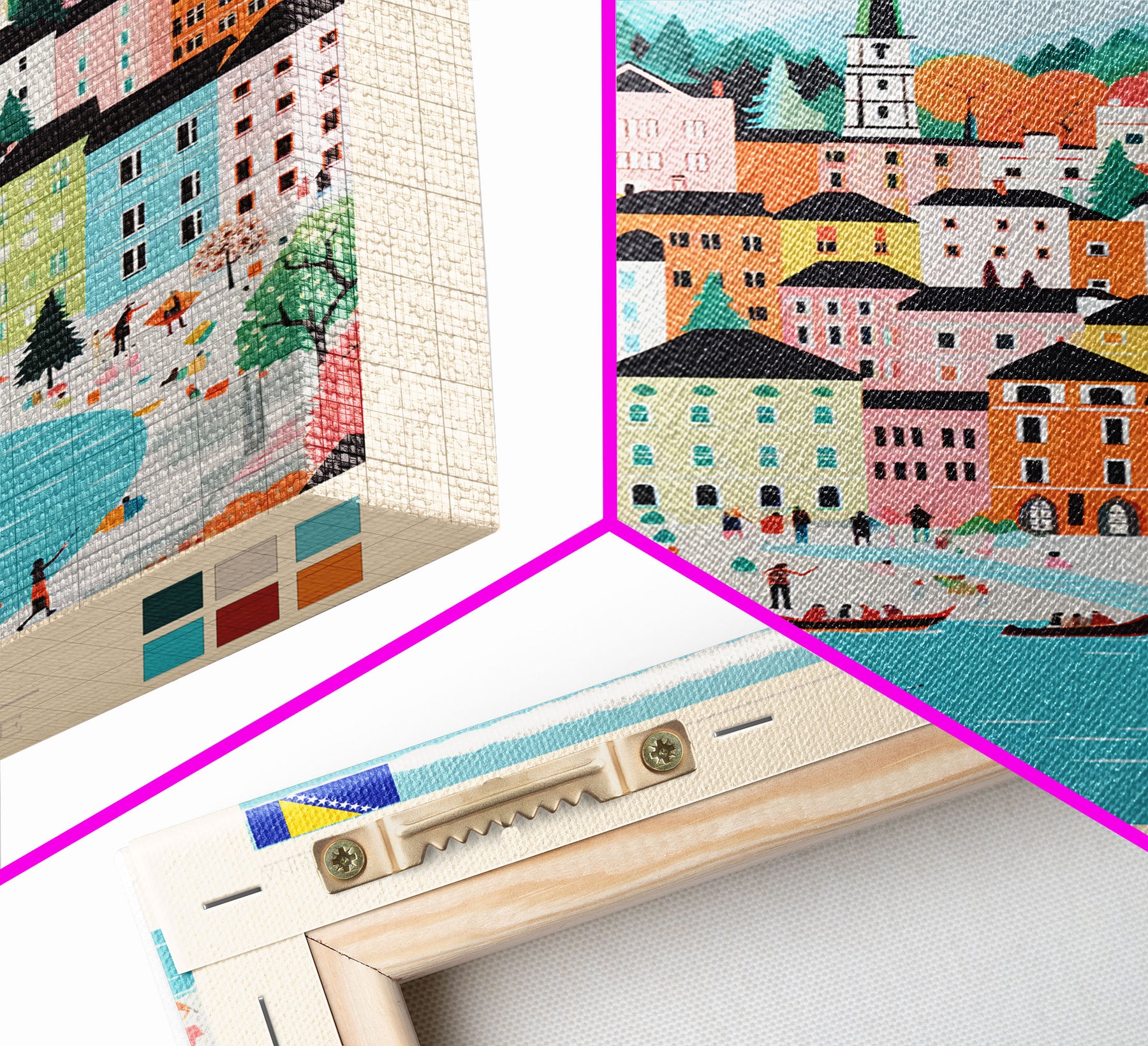 Hello and thank you for taking the time to view our modern high quality giclée artwork! We offer both posters and stretched canvas prints. Our posters are printed on Ultra Matte 60 lb / 230 GSM high quality photo paper, with a thickness of 10 mil. Our canvases are printed on museum grade 350 GSM canvas material with ECO friendly archival grade ink, then hand stretched and stapled over premium, FSC certified and shrink resistant frames. Designed and built to last a lifetime.