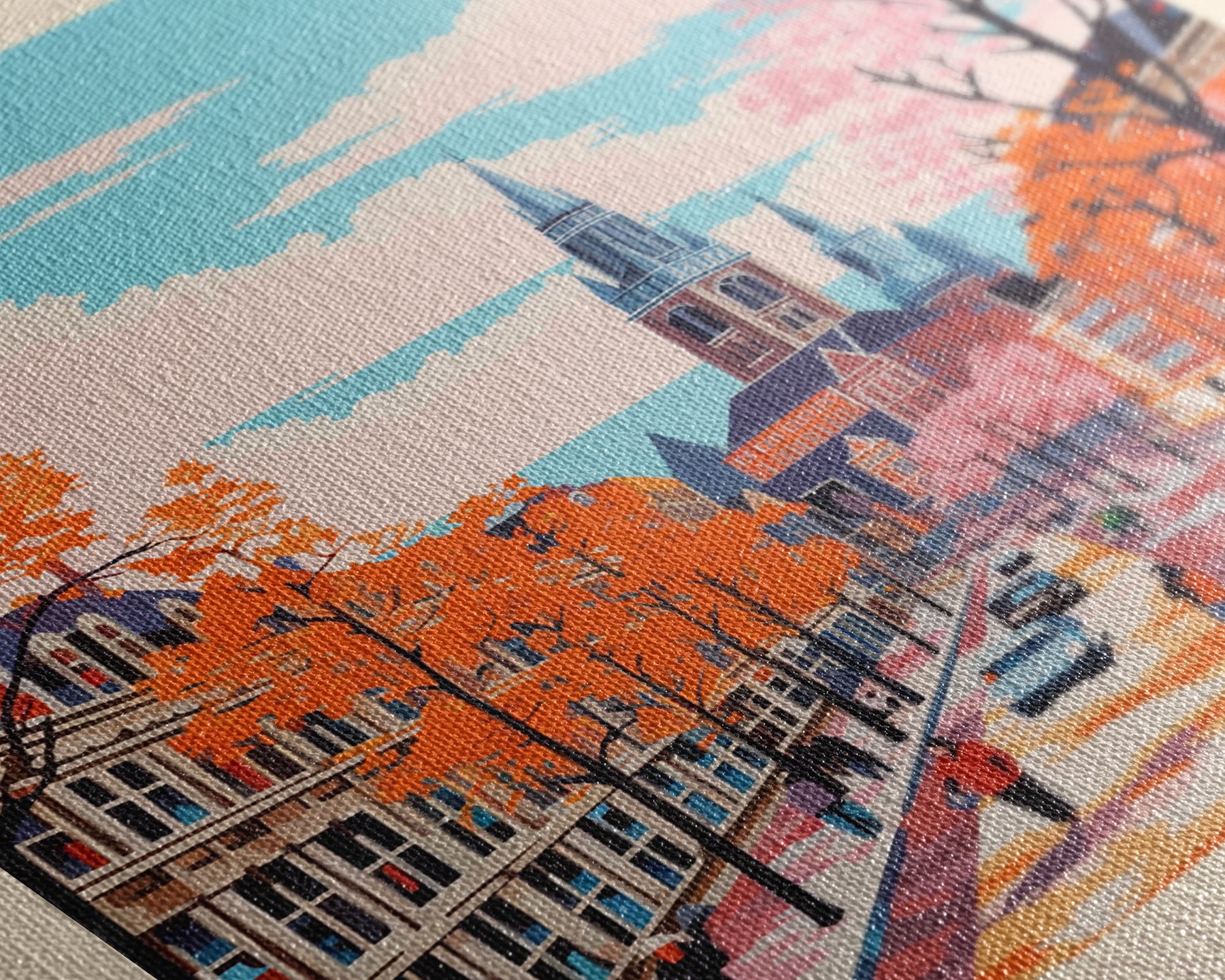 Most of our canvases are made in the USA, with the exception of canvases ordered with the light oak unstained frames, and any large canvases (24x48, 30x60, 16x48 and 20x60) ordered WITH a frame. These are temporarily made in and shipped from Europe, while we try to find a more consistent supplier in the USA.