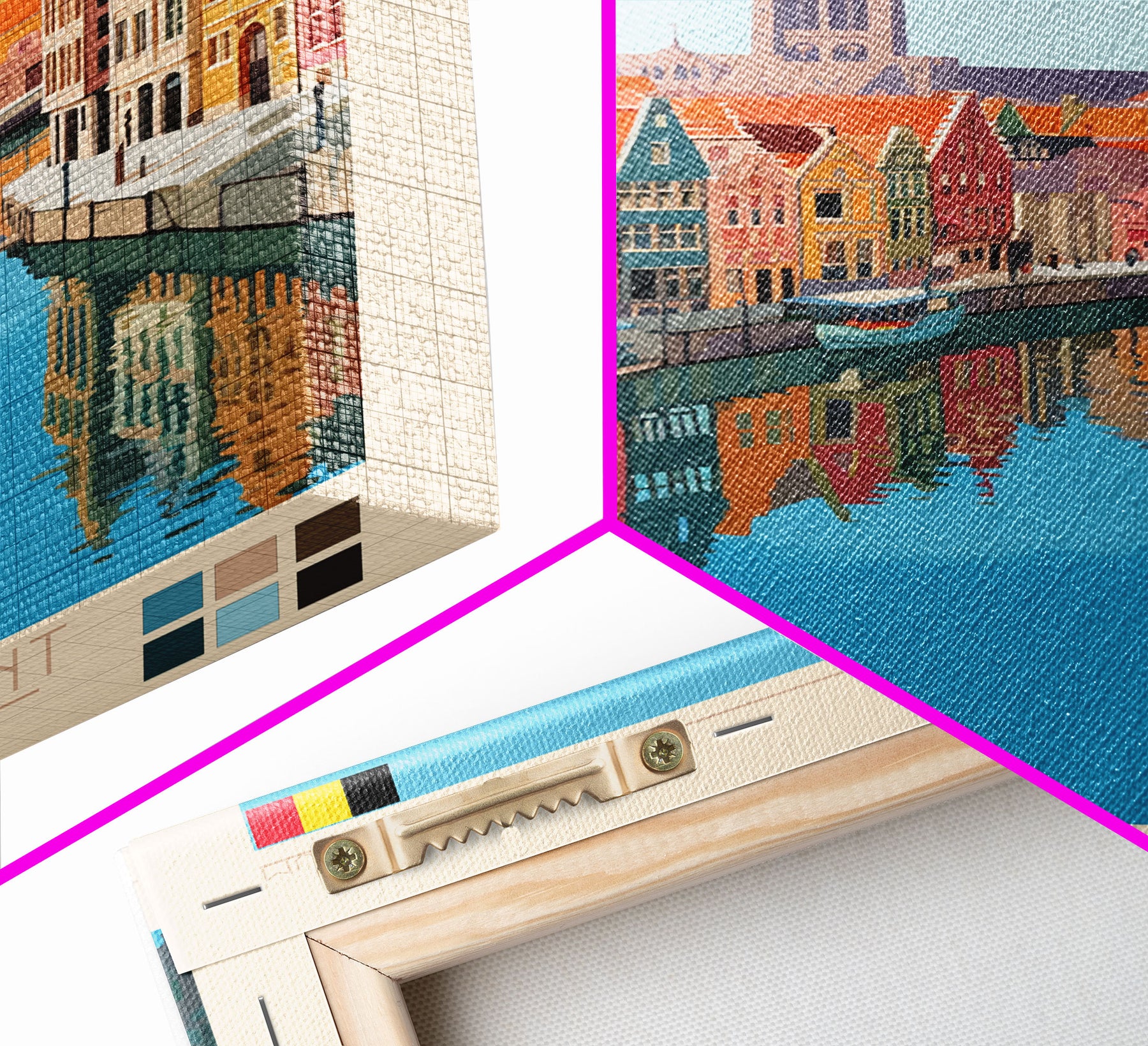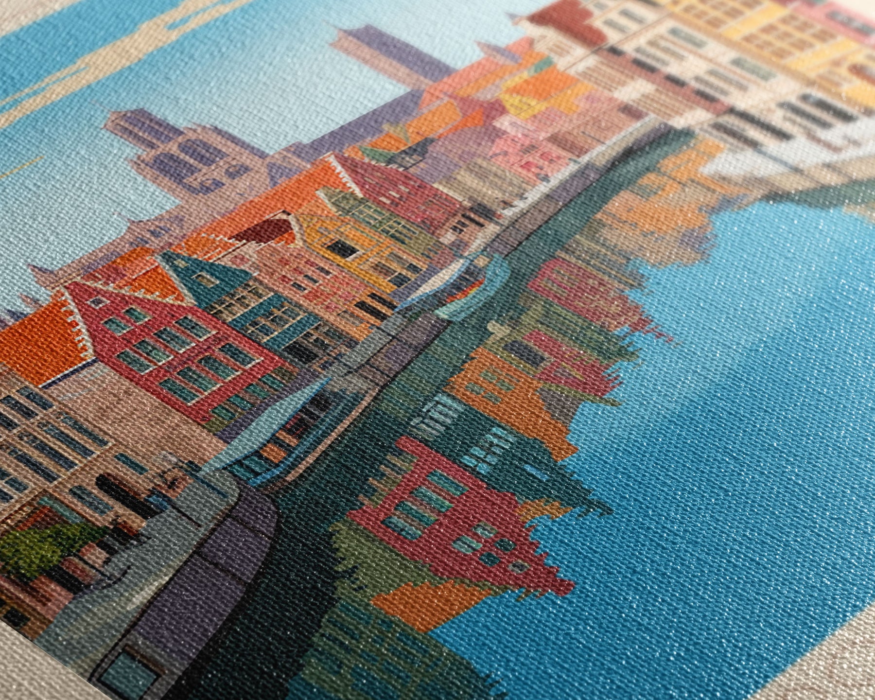 Ghent Belgium Travel Poster Framed Canvas Print, Midcentury Modern Art, Pop Art Wall Decor, Scenic Wall Art, Living Room Decoration, Office Art