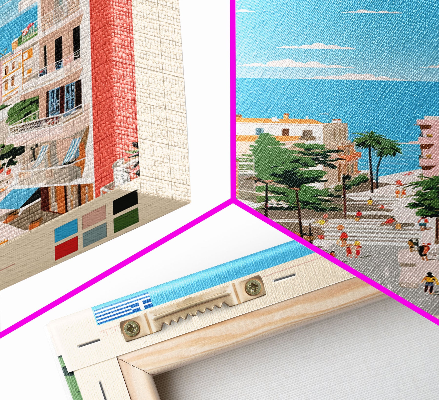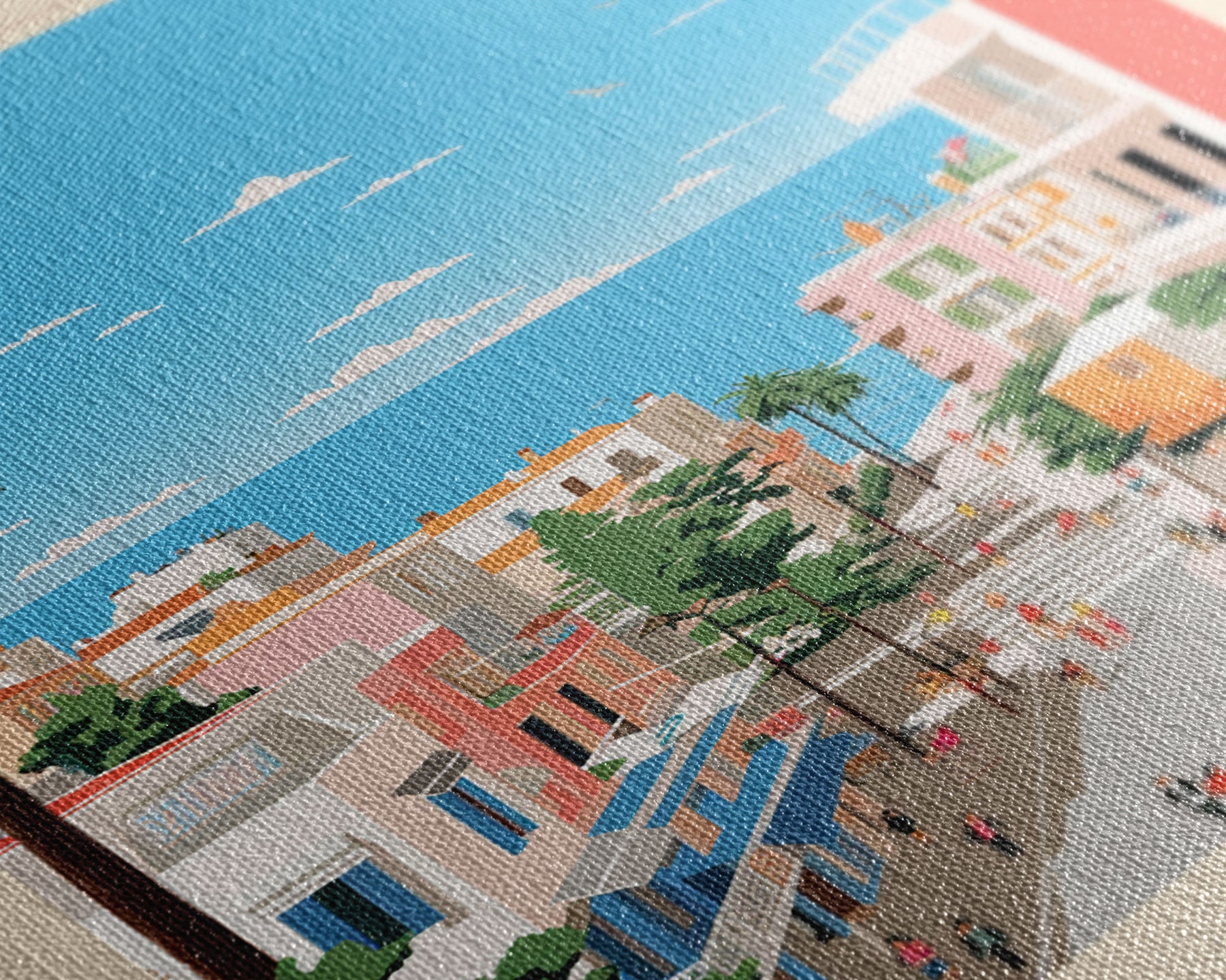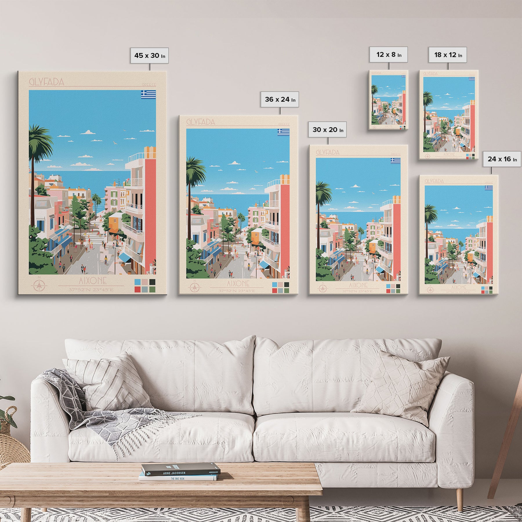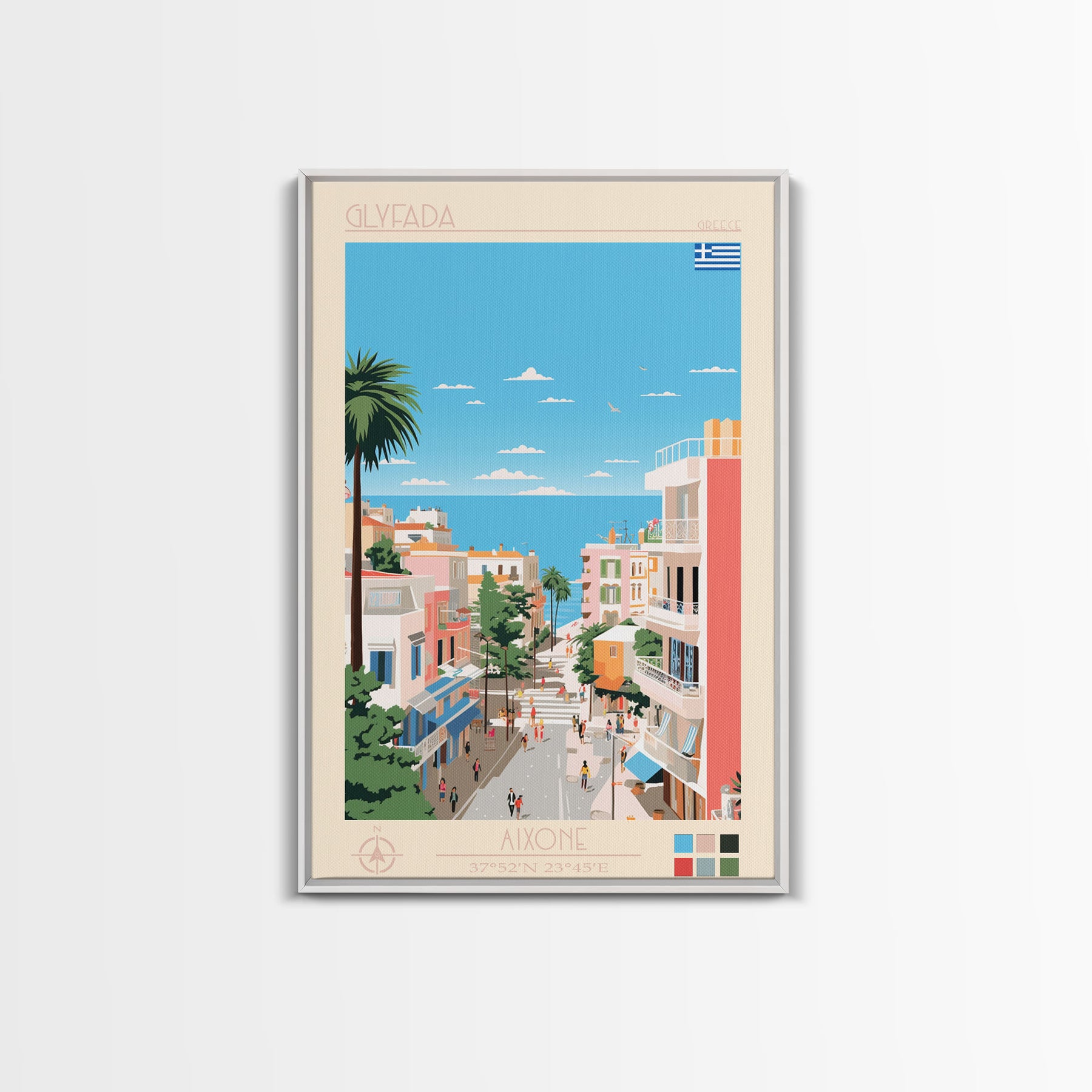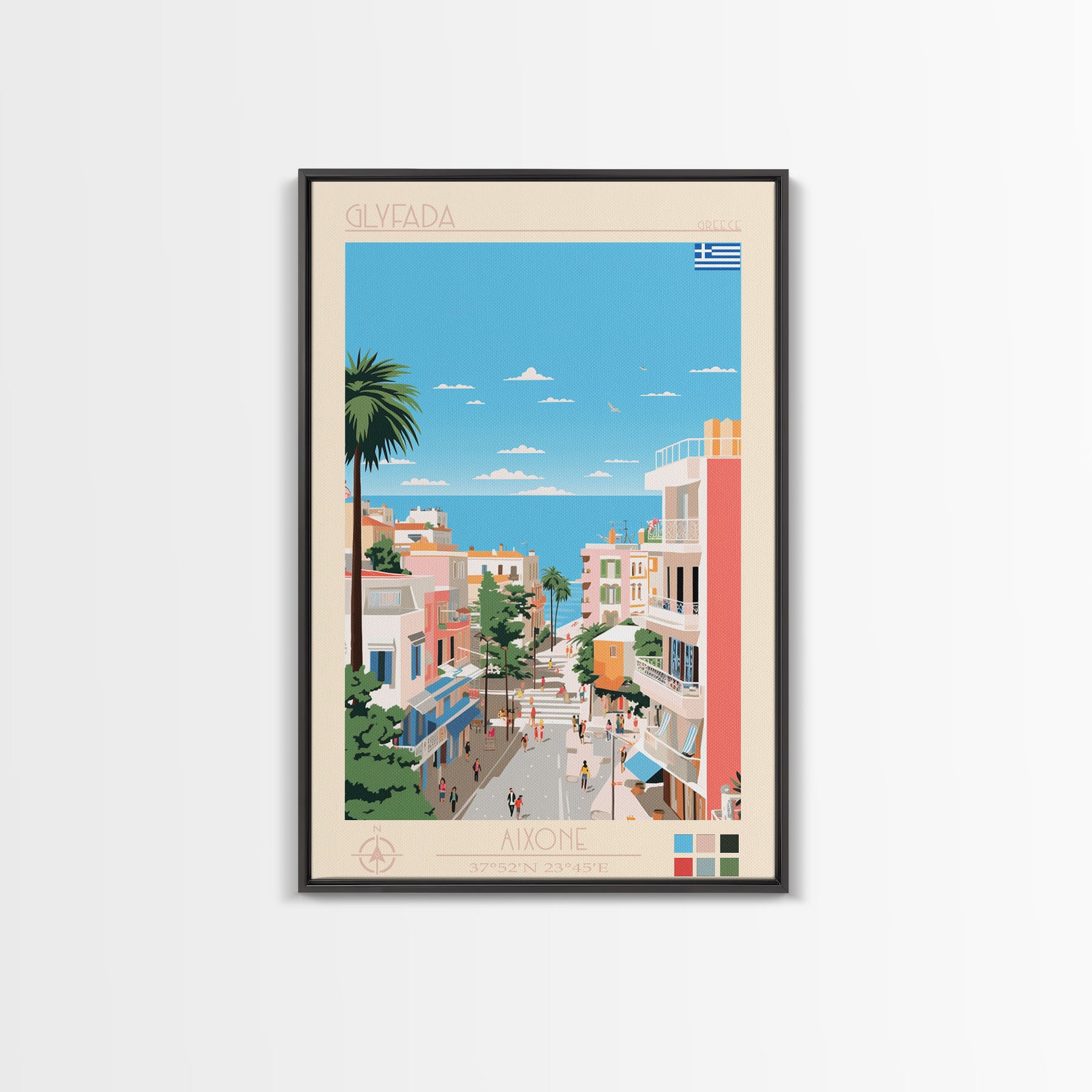 Glyfada Greece Travel Poster Framed Canvas Print, Midcentury Modern Art, Pop Art Wall Decor, Scenic Wall Art, Bedroom Decoration, Office Art
