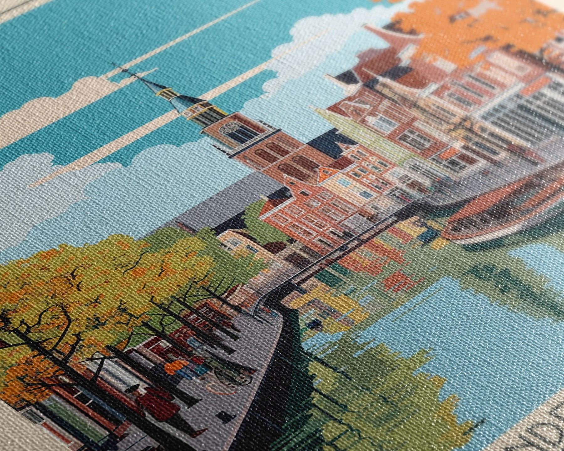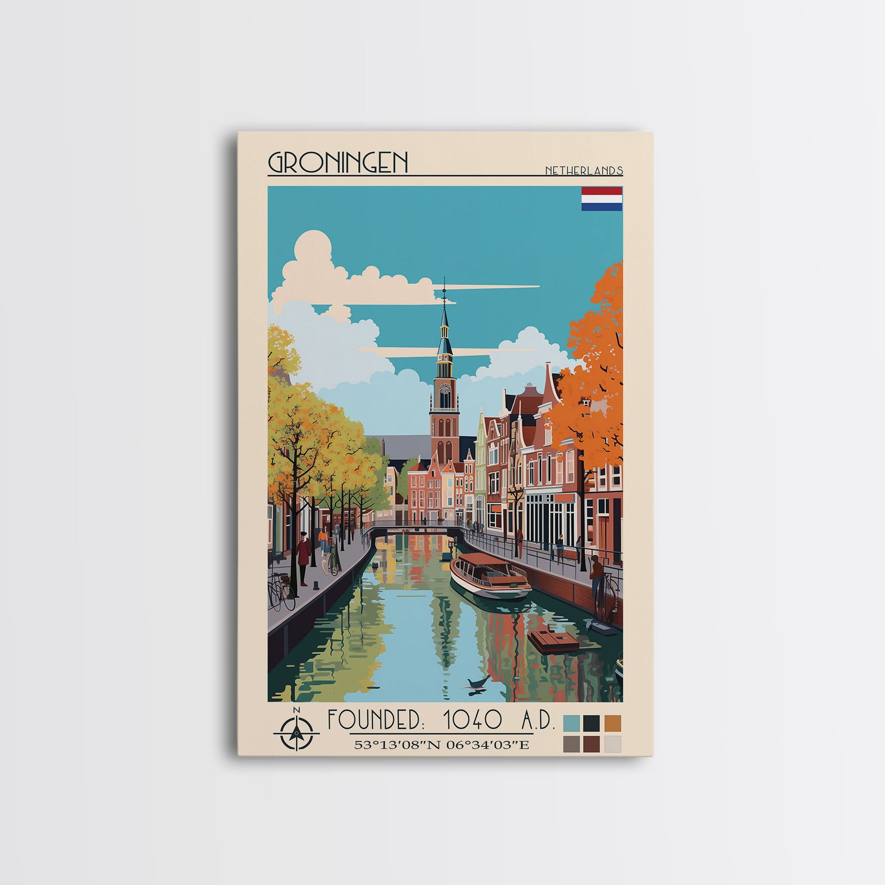 Groningen Netherlands Travel Poster Framed Canvas Print, Midcentury Modern Art, Pop Art Wall Decor, Scenic Living Room Art, Bedroom Gift