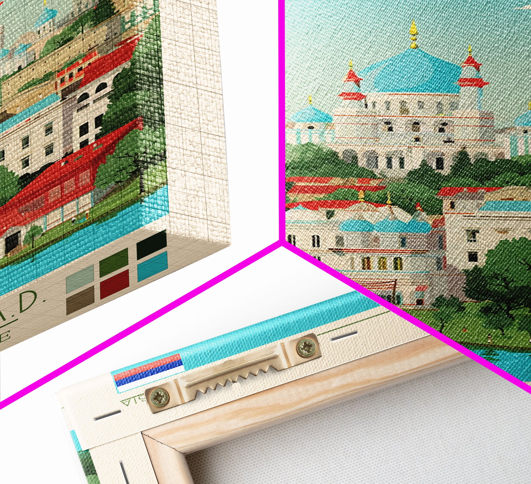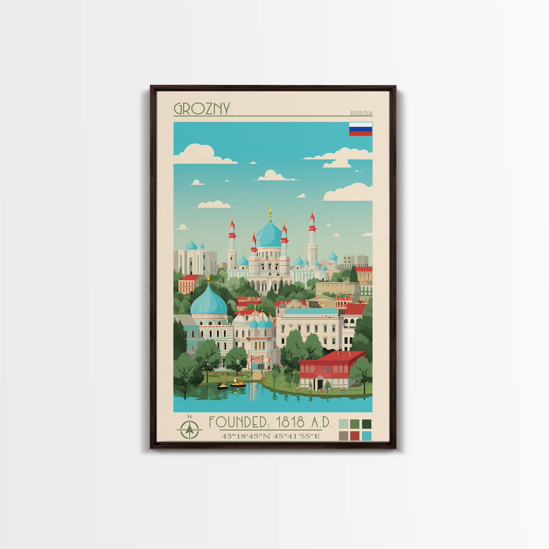Grozny Russia Travel Poster Framed Canvas Print, Midcentury Modern Art, Pop Art Wall Decor, Scenic Wall Art, Living Room Decoration, Office Art