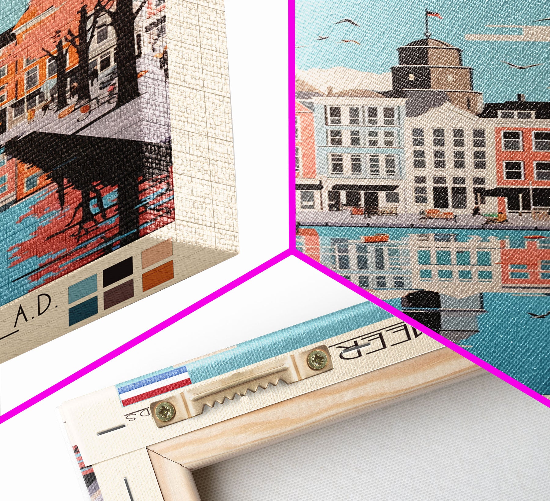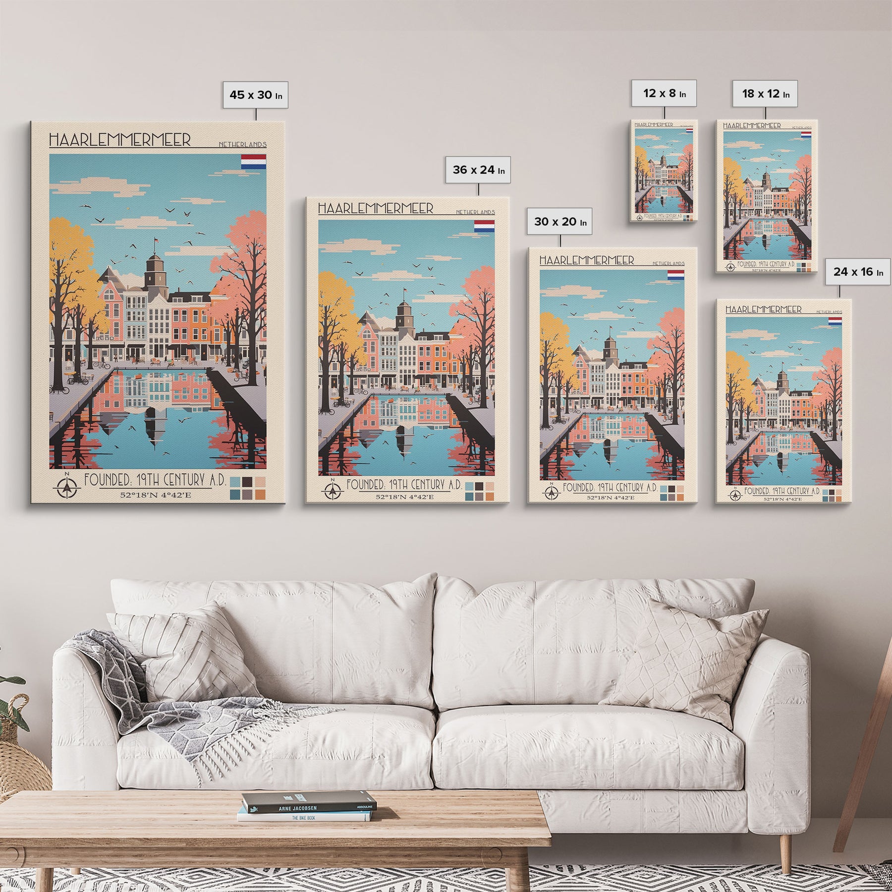Haarlemmermeer Netherlands Travel Poster Framed Canvas Print, Midcentury Modern Art, Pop Art Wall Decor, Scenic Wall Art, Living Room Decoration, Office Art