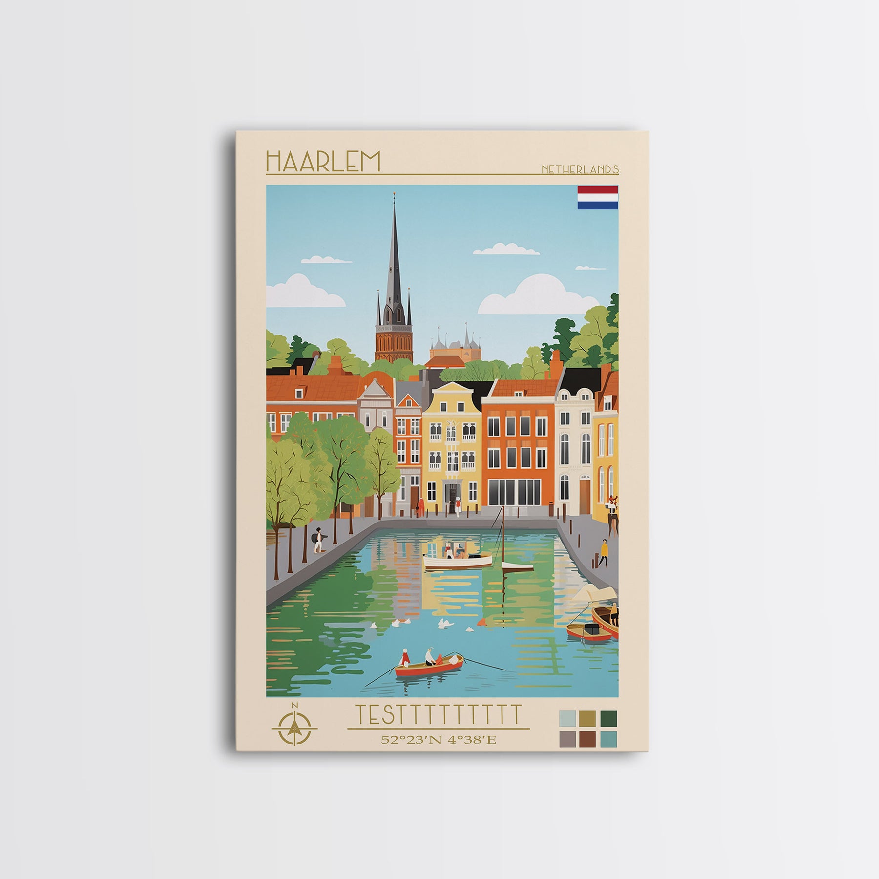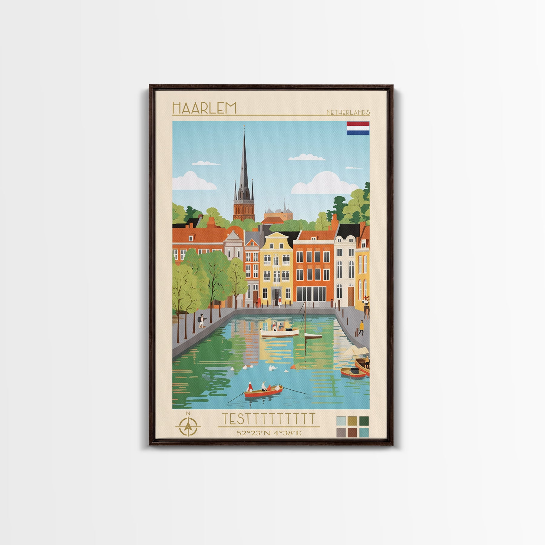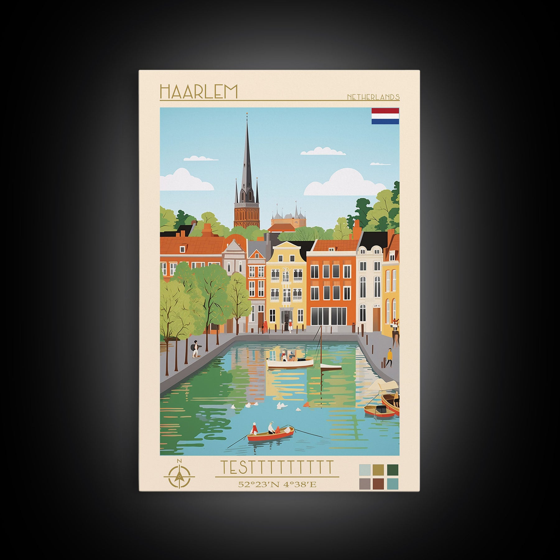 Haarlem Netherlands Travel Poster Framed Canvas Print, Midcentury Modern Art, Pop Art Wall Decor, Scenic Bedroom Art, Office Decoration