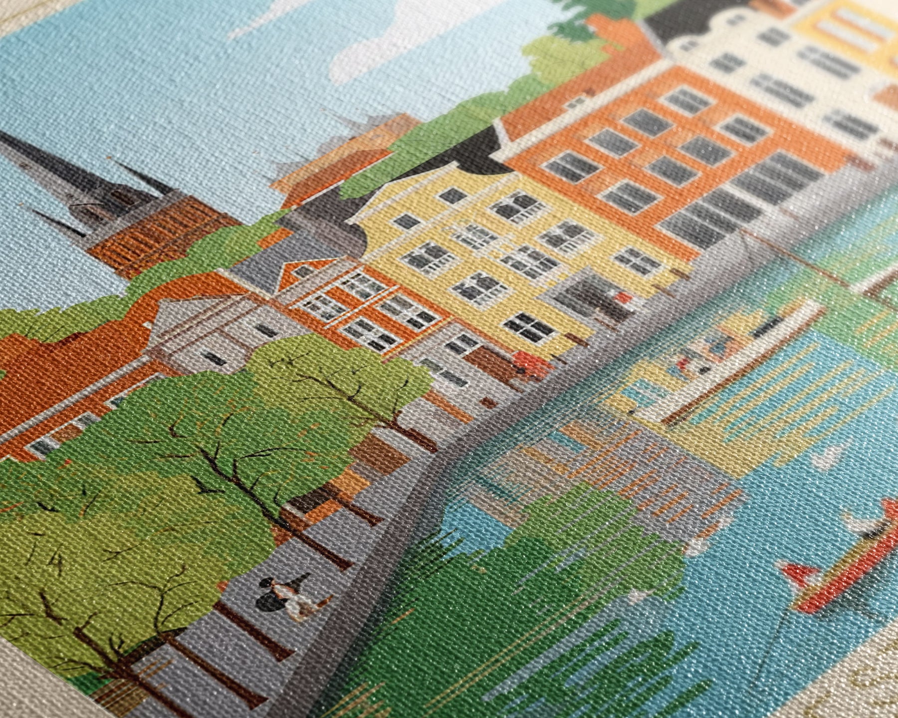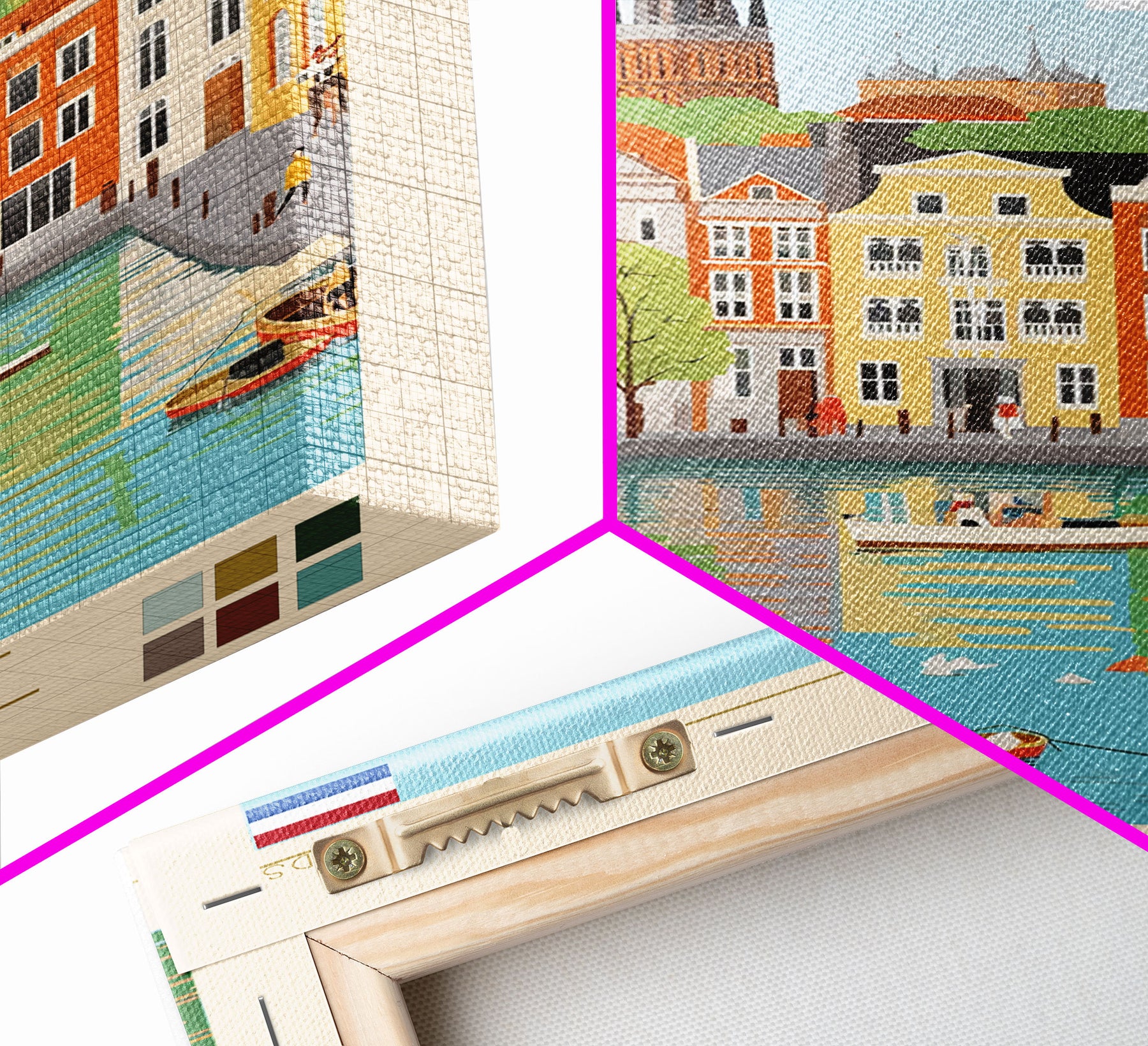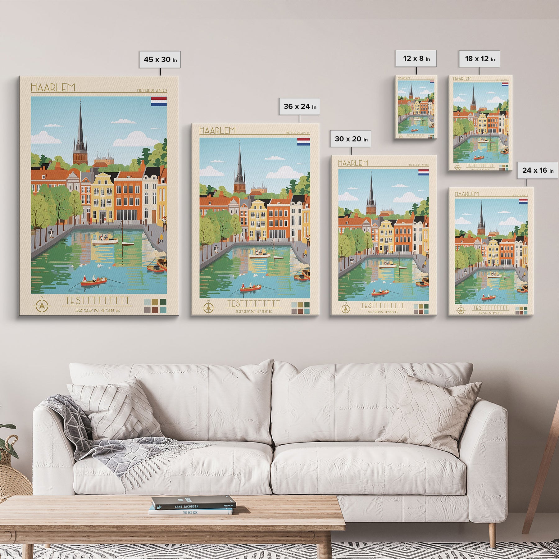 Haarlem Netherlands Travel Poster Framed Canvas Print, Midcentury Modern Art, Pop Art Wall Decor, Scenic Bedroom Art, Office Decoration