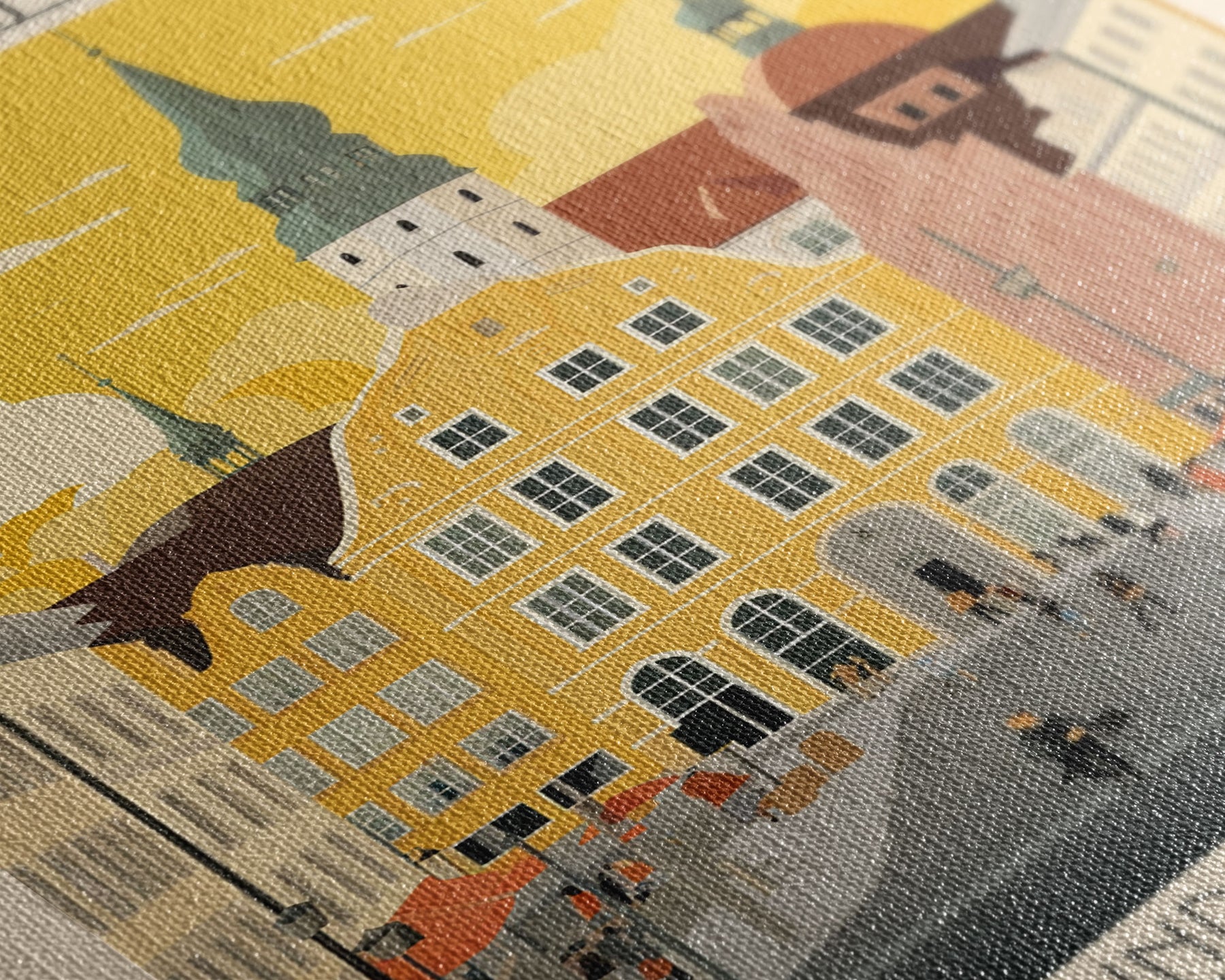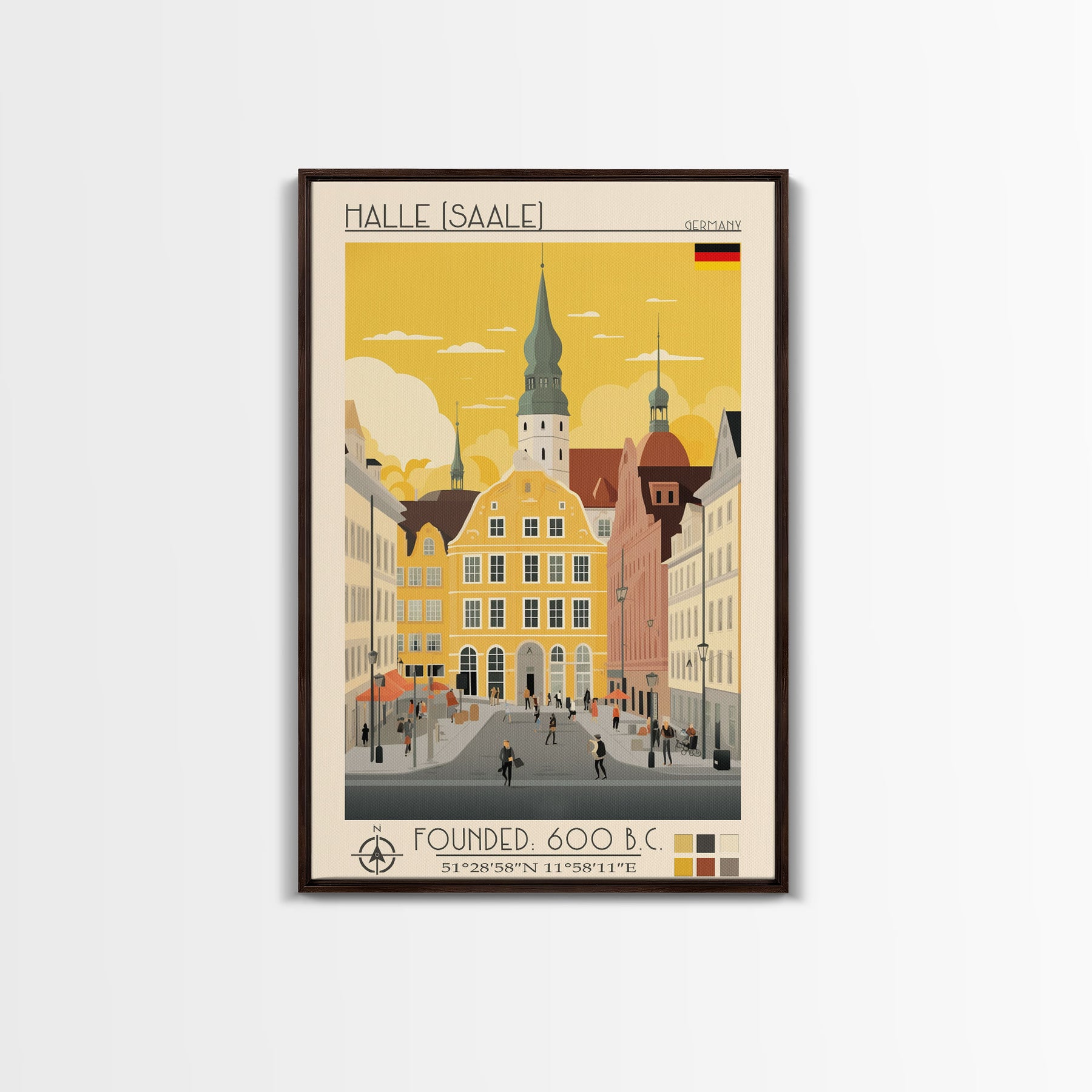 Halle Germany Travel Poster Framed Canvas Print, Midcentury Modern Art, Pop Art Wall Decor, Scenic Living Room Art, Bedroom Decor
