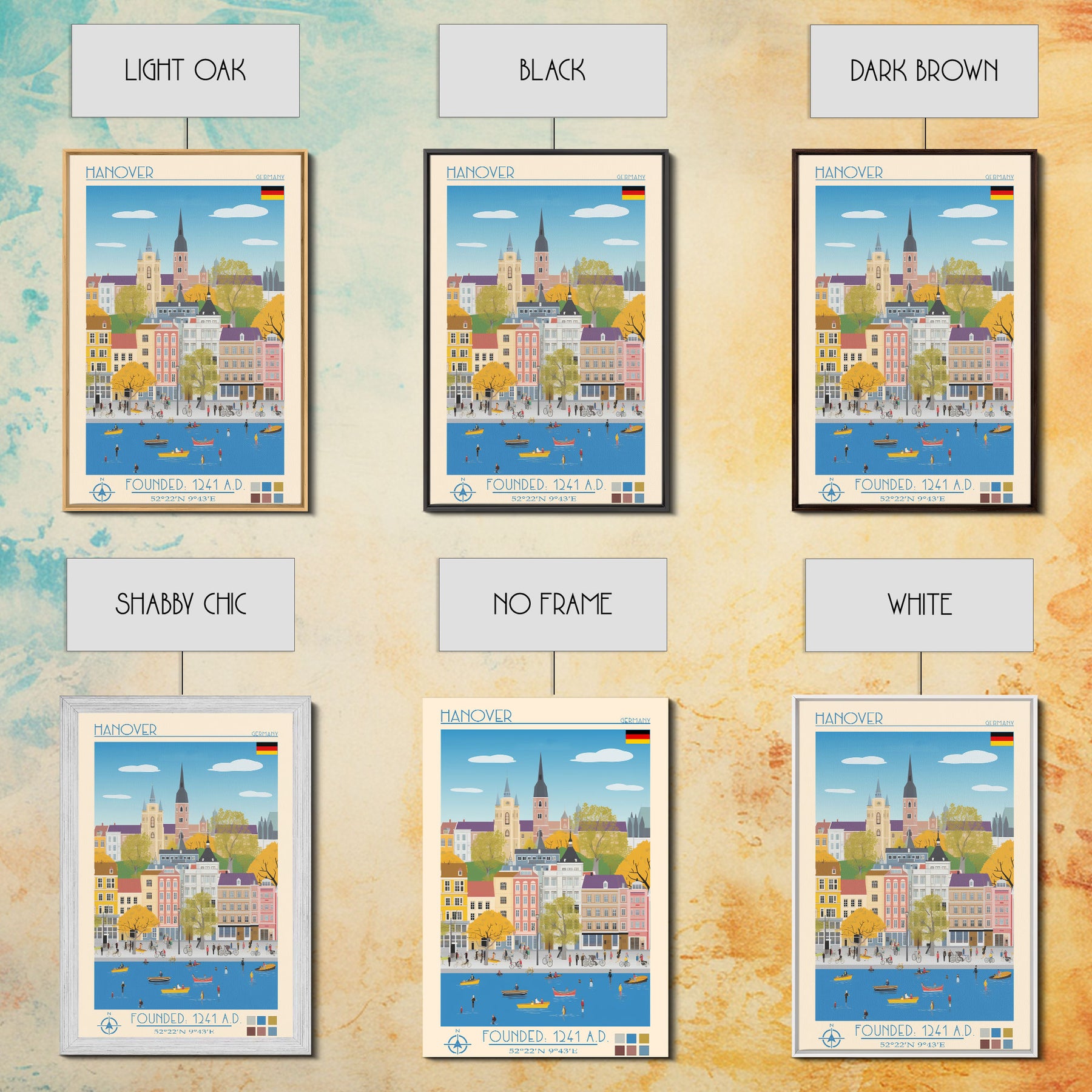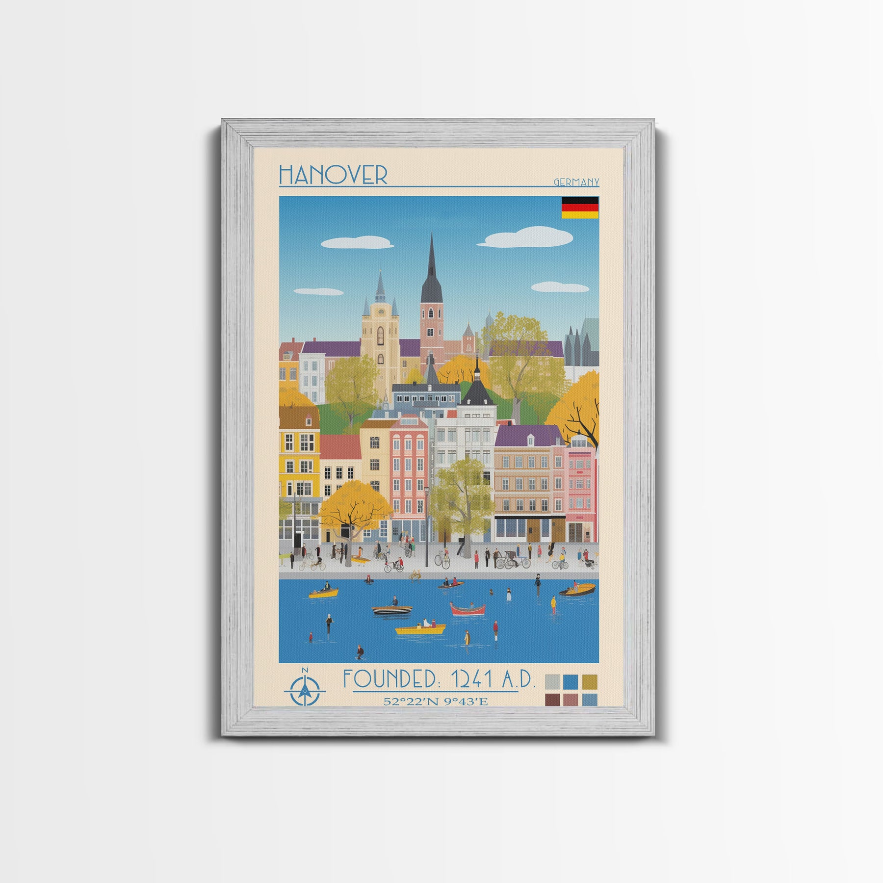 Hanover Germany Travel Poster Framed Canvas Print, Midcentury Modern Art, Pop Art Wall Decor, Scenic Wall Art, Living Room Decoration, Office Art