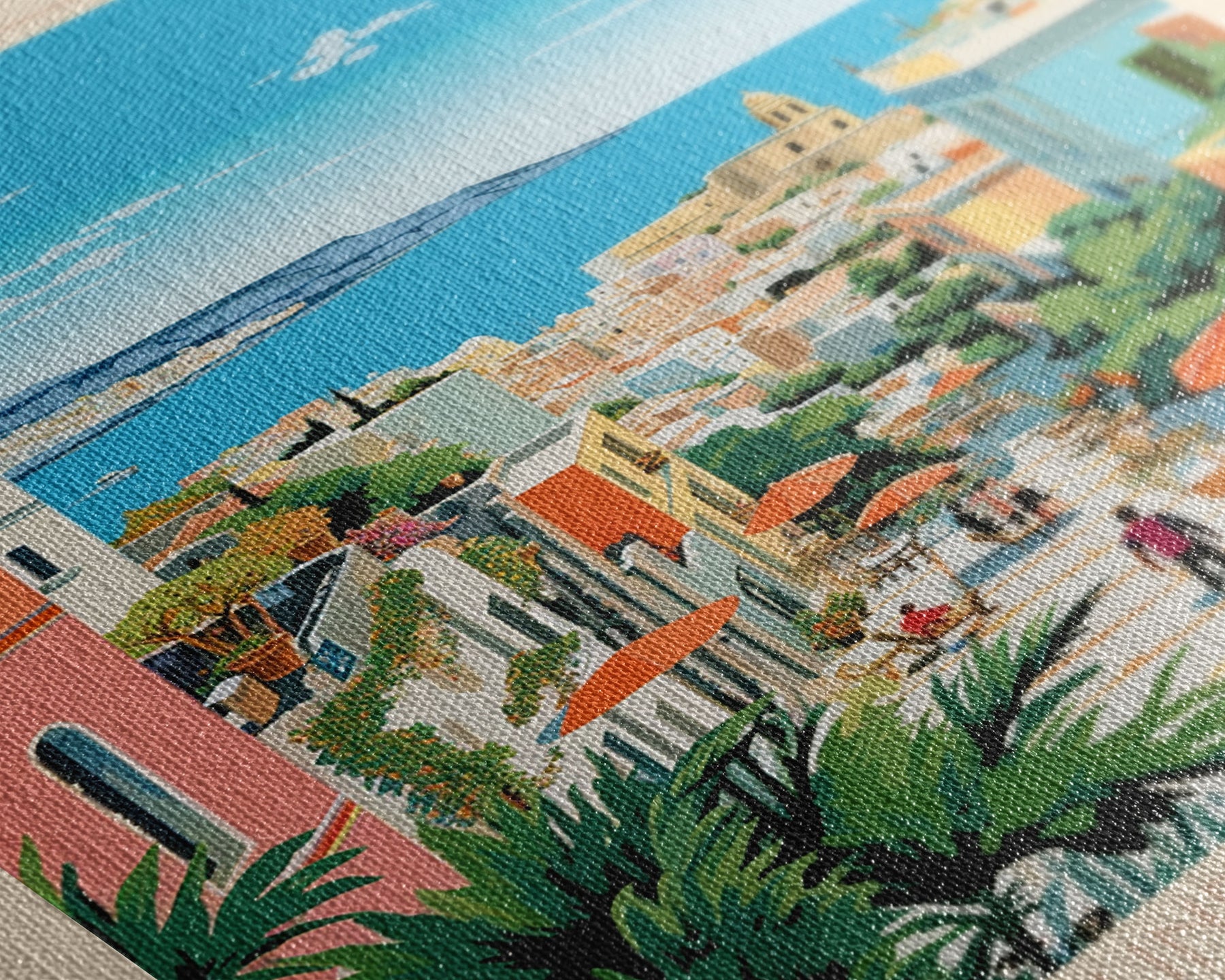 Most of our canvases are made in the USA, with the exception of canvases ordered with the light oak unstained frames, and any large canvases (24x48, 30x60, 16x48 and 20x60) ordered WITH a frame. These are temporarily made in and shipped from Europe, while we try to find a more consistent supplier in the USA.